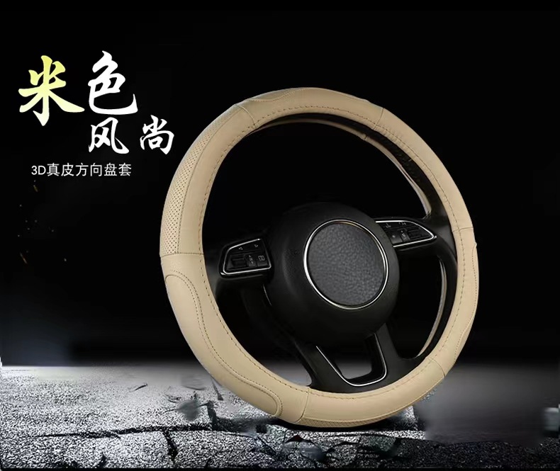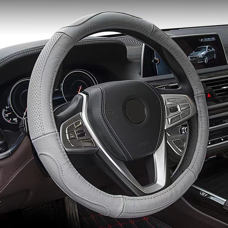 2022 새로운 가죽 스티어링 휠 커버 헤드 레이어 소가죽 자동차 핸들 커버 바느질 통기성 사계절 유니버설 스티어링 휠 커버스토어 가기