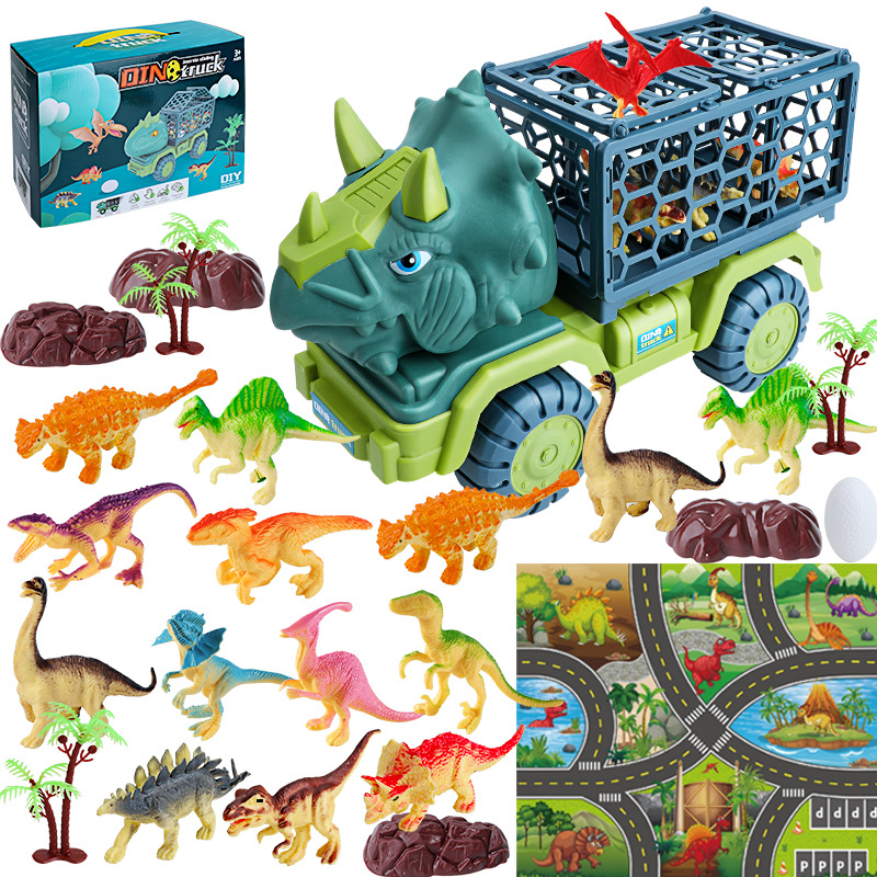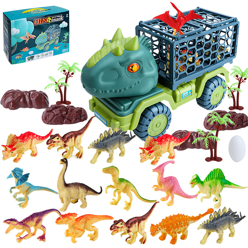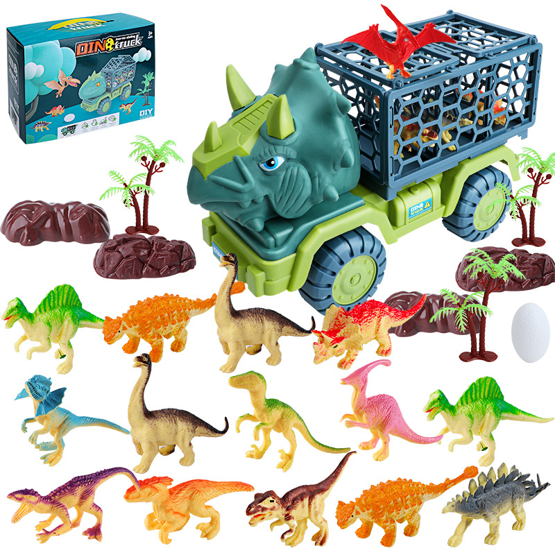 대형 공룡 수송기 어린이 장난감 세트 소년 퍼즐 시뮬레이션 티라노 사우루스 렉스 트리케라톱스 자동차 국경스토어 가기