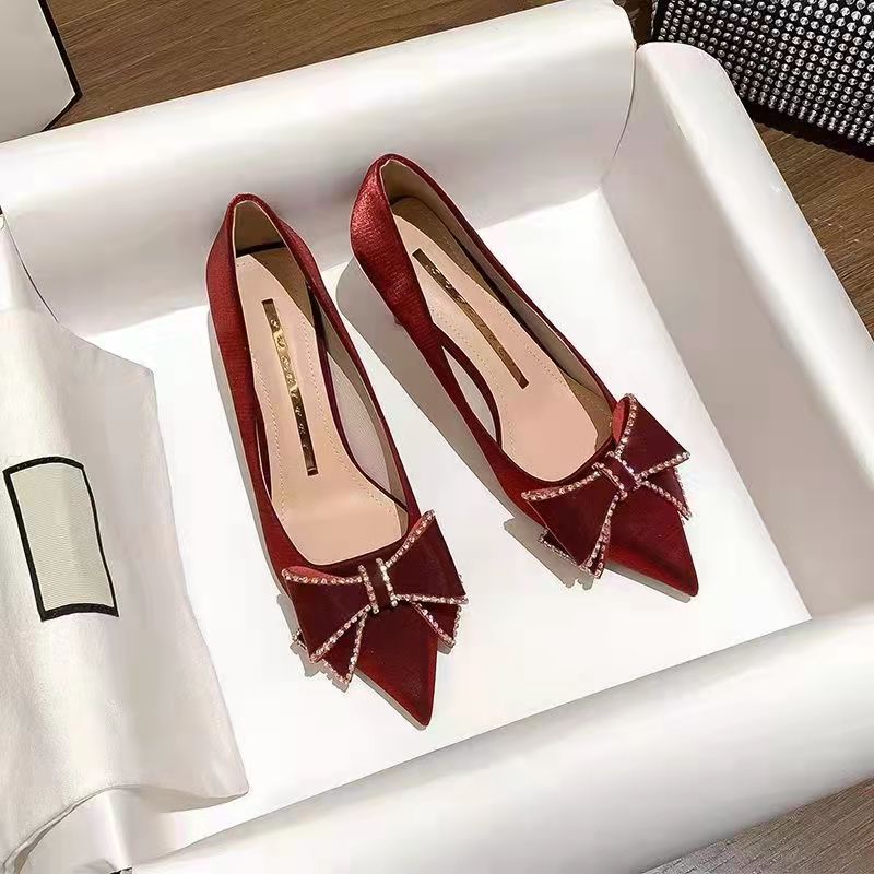 웨딩 슈즈 레드 프랑스 하이 엔드 센스 3cm 낮은 굽 신부 신발 Xiuhe 의류 작은 굽 신발 두 착용 임산부 플랫 솔