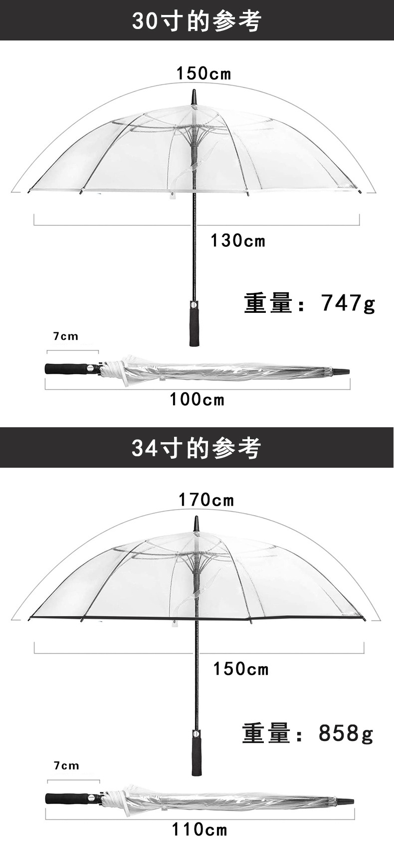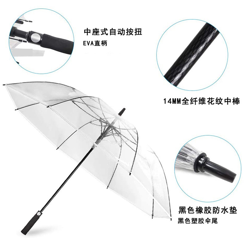 친환경 PVC 투명 우산 대형 초대형 골프 방풍 우산 긴 손잡이 투명 두꺼운 강한 인쇄 로고
