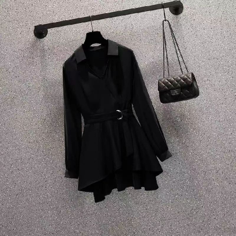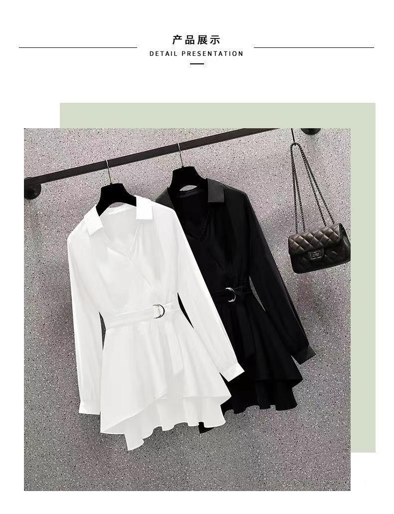 플러스 사이즈 여성의 패션 타이트 허리 슬리밍 셔츠 여성의 모든 경기 통통녀 여름 긴 소매 셔츠 동남아시아 크로스 보더 도매스토어 가기