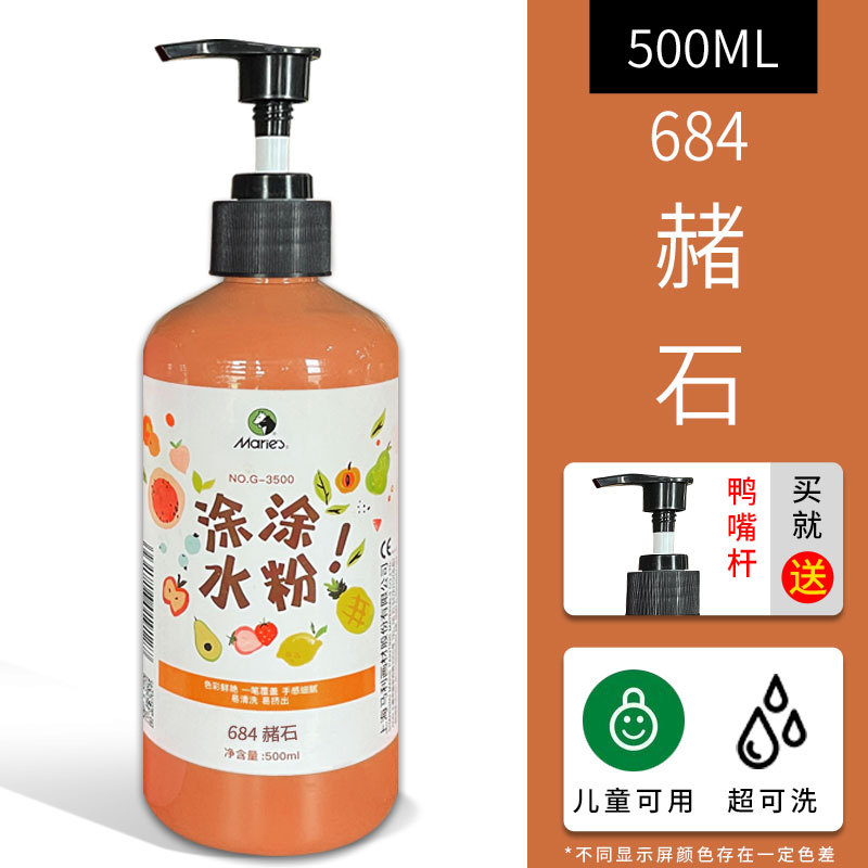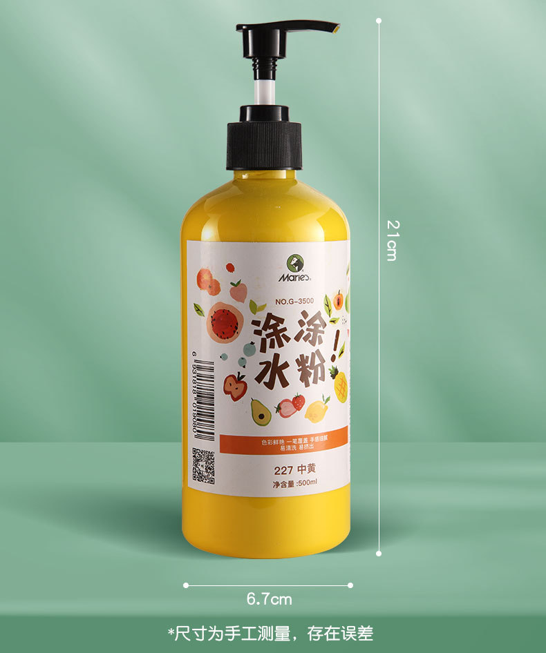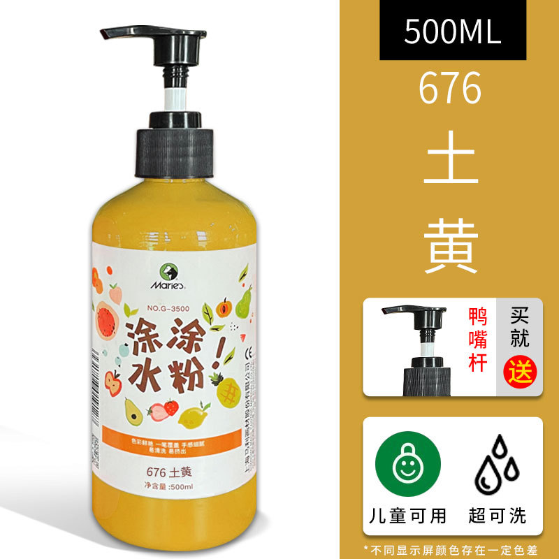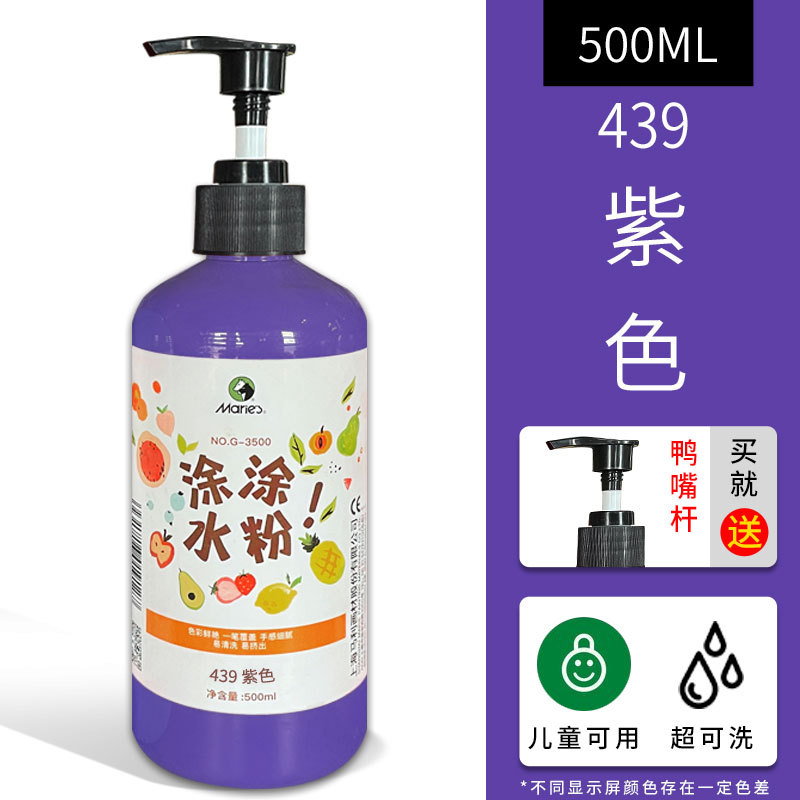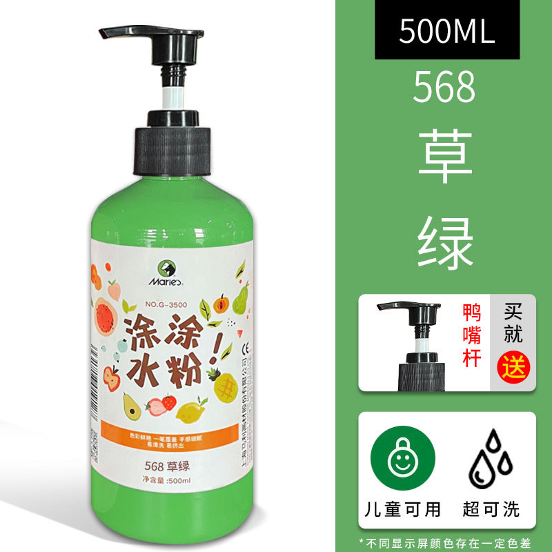 马利儿童水粉颜料500ml大瓶装幼儿园手指画可水洗罐装初学水彩画