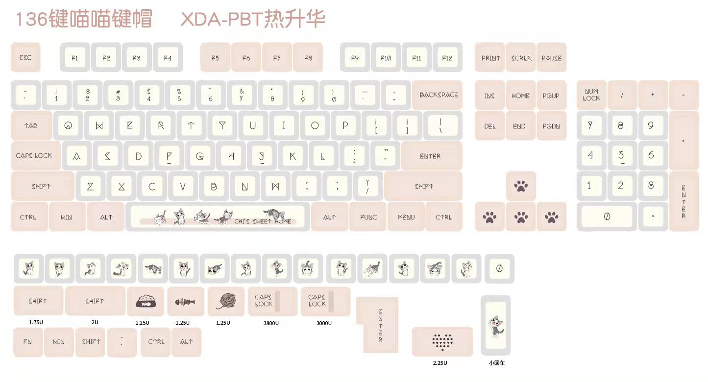 공장 키 캡 도매 136 키 야옹 낮은 빛 안개 PBT 승화 diy 재료 생산 기계 키보드 캡