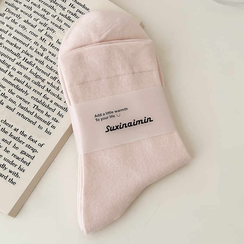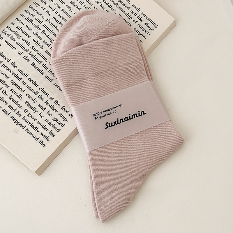 Suxinaimin 새로운 한국 스타일 부드러운 느슨한 달 양말 일본 소녀 핑크 모든 일치 단색 면 양말