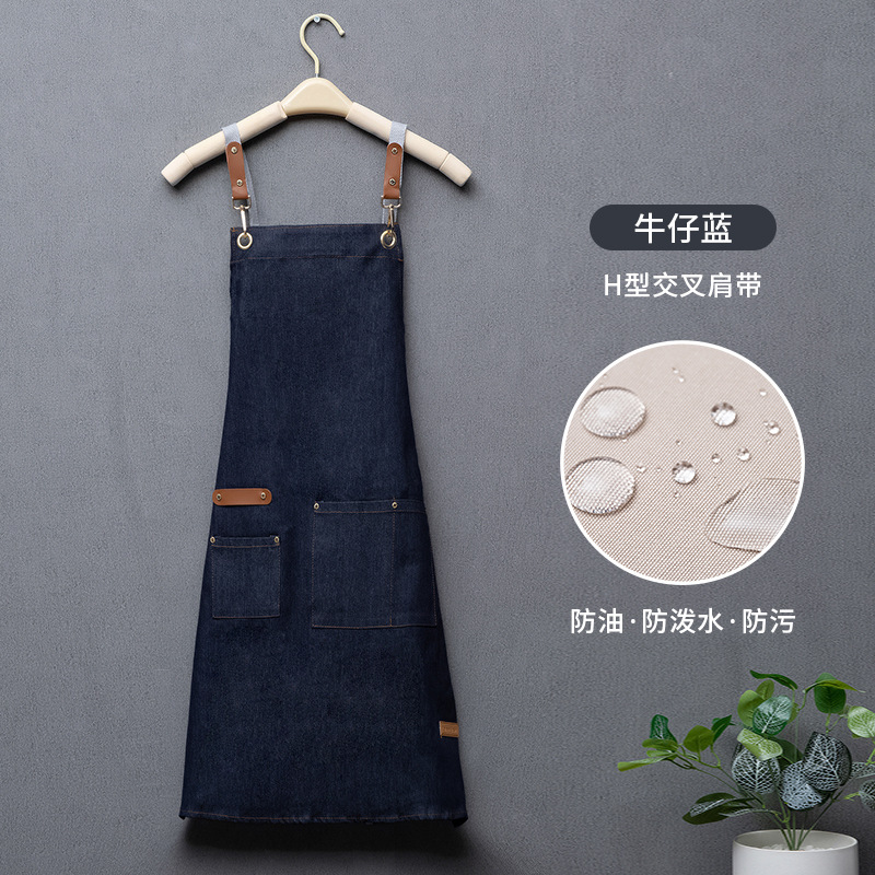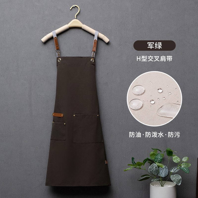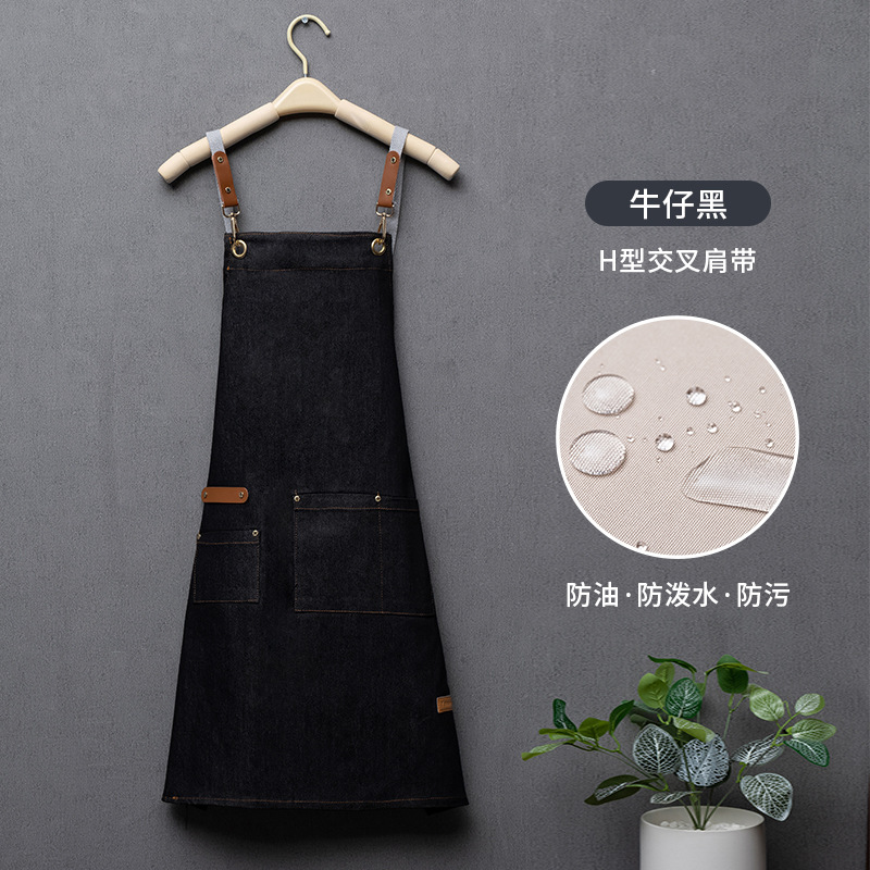 로고가 인쇄된 작업 앞치마 한국식 서스펜더 솔리드 컬러 앞치마 커피 밀크티 냄비 슈퍼마켓 작업복 방수