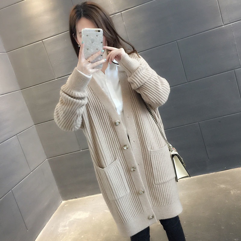 2023 가을과 겨울 New Very Fairy V-넥 스웨터 여성 코트 한국 패션 느슨한 스웨터 카디건 롱스토어 가기