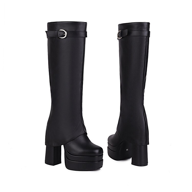2022 대외 무역 새로운 유럽과 미국 스타일 라운드 헤드 방수 플랫폼 두꺼운 굽 하이힐 벨트 버클 하이 부츠 어린이 접이식 바지 부츠스토어 가기