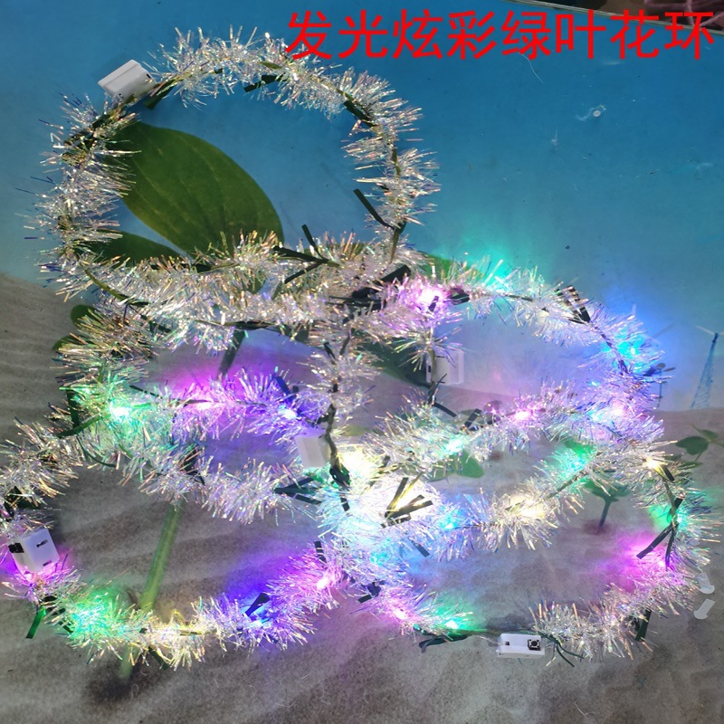 • 빛과 화려한 녹색 잎 화환 (배터리 보내기)