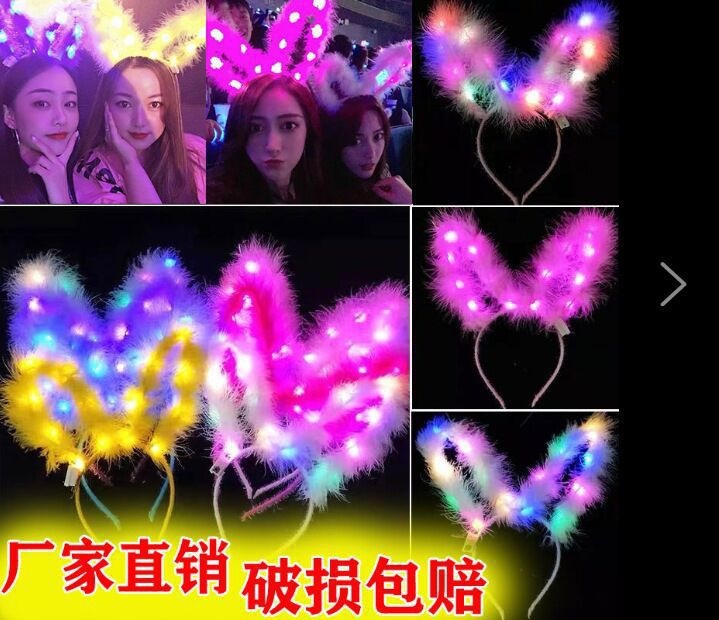 • 새로운 발광 판매 귀여운 토끼 귀 (배터리 랜덤 헤어 보내기)