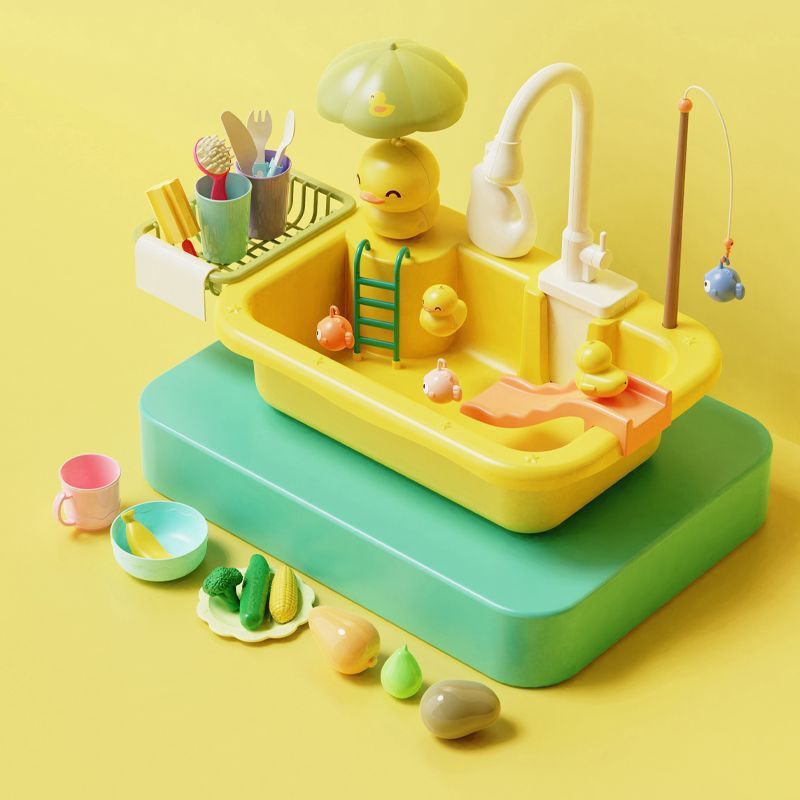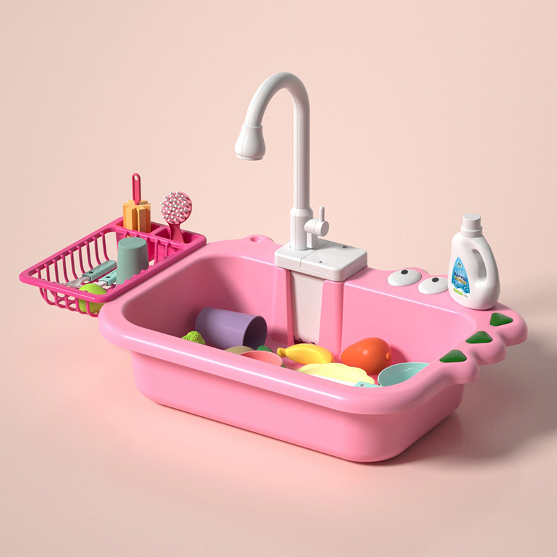 어린이 식기 세척기 테이블 장난감 싱크대 분지 수도꼭지 순환 전기 물 콘센트 놀이 집 부엌 여자의 소리를 흔들어
