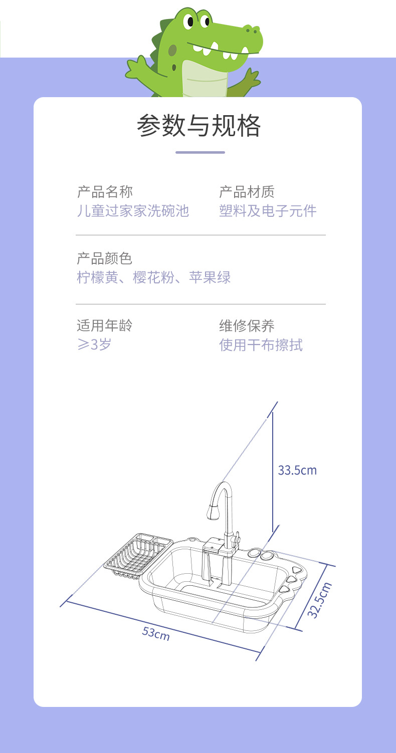 产品名称: 萌鳄洗碗台(4粒AA不包电)
