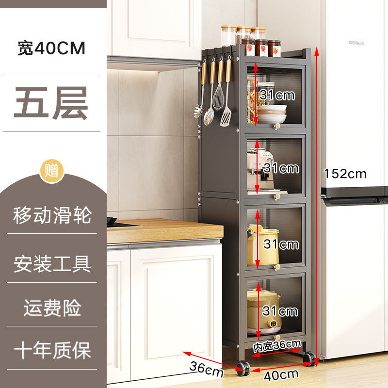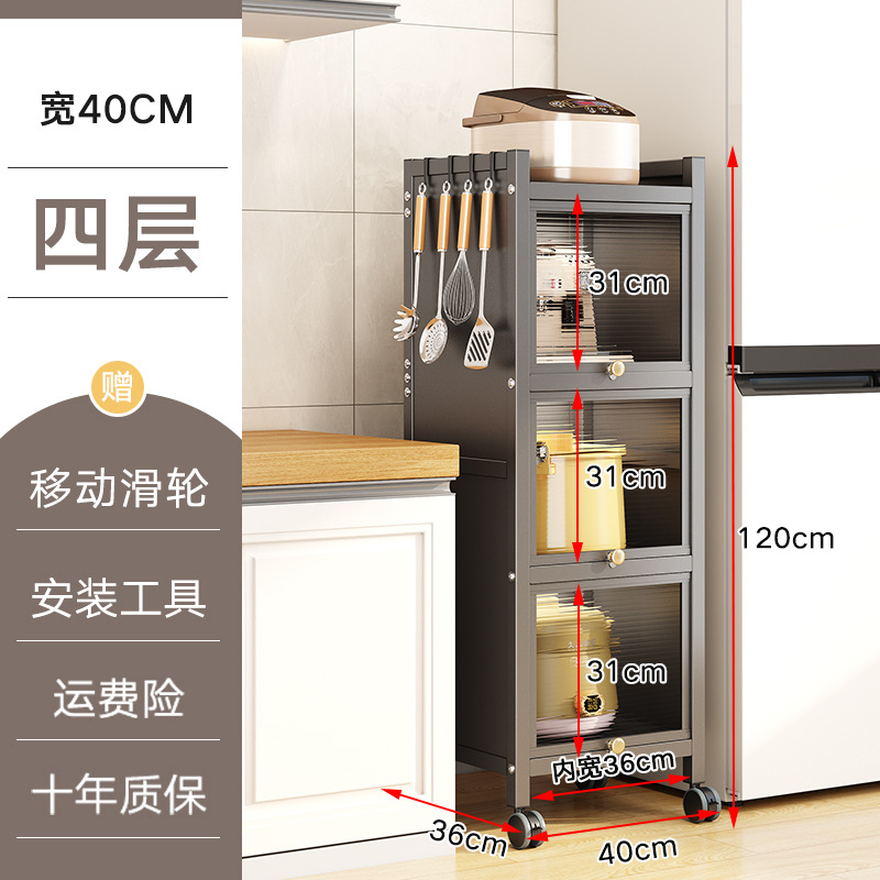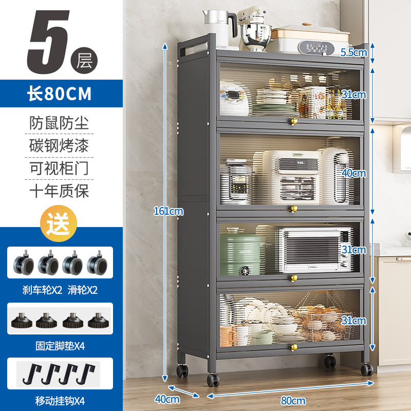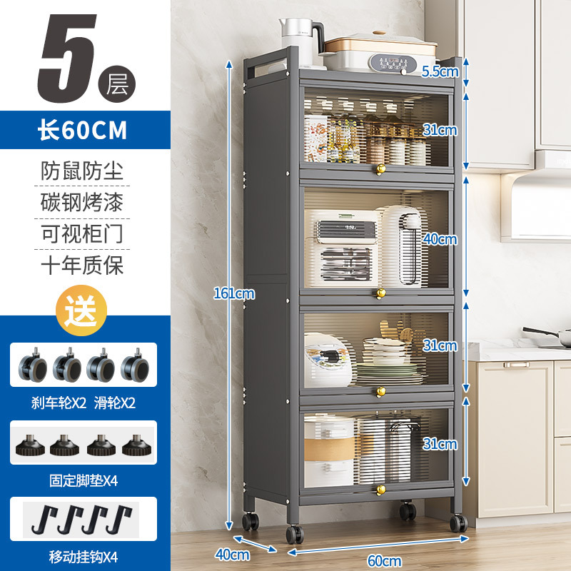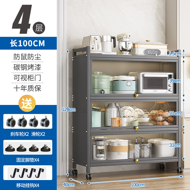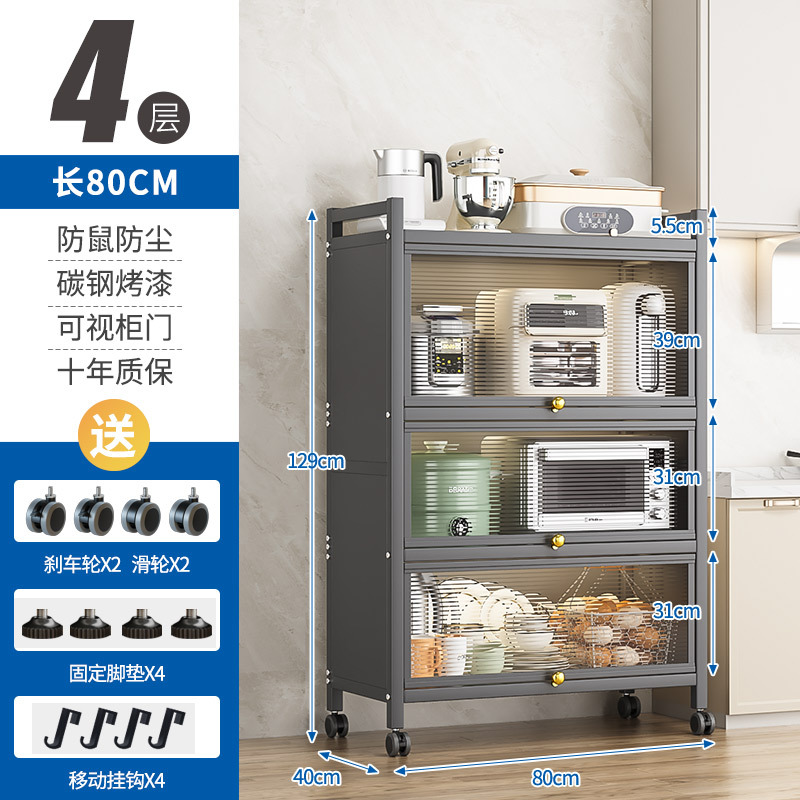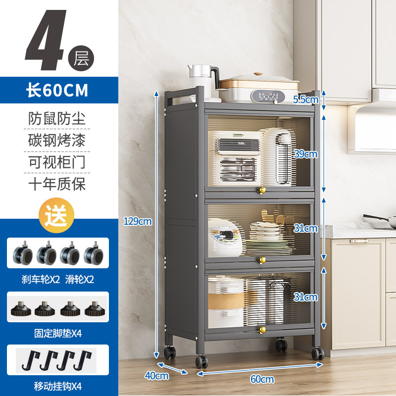 도어 스토리지 랙이있는 주방 스토리지 랙 스토리지 캐비닛 스토리지 랙 바닥에 서있는 전자 레인지 오븐 냄비 랙 캐비닛스토어 가기
