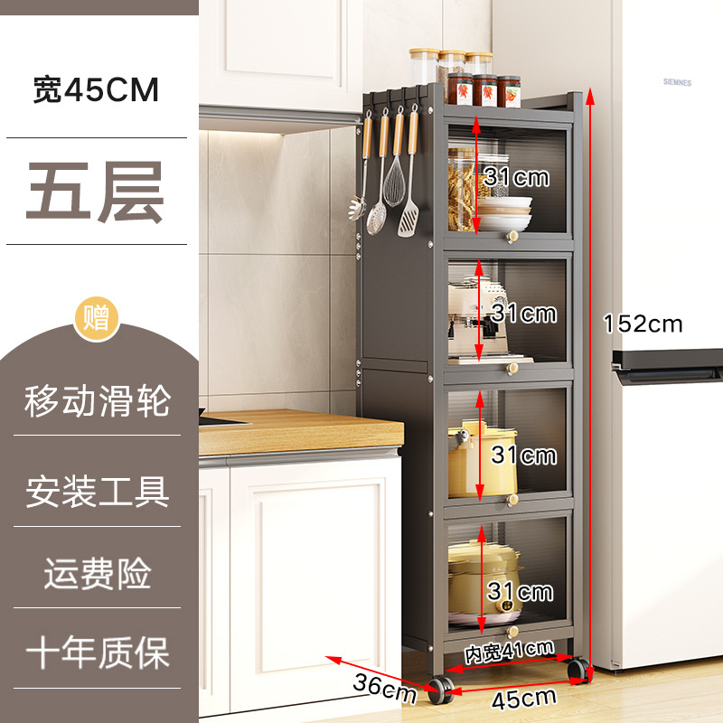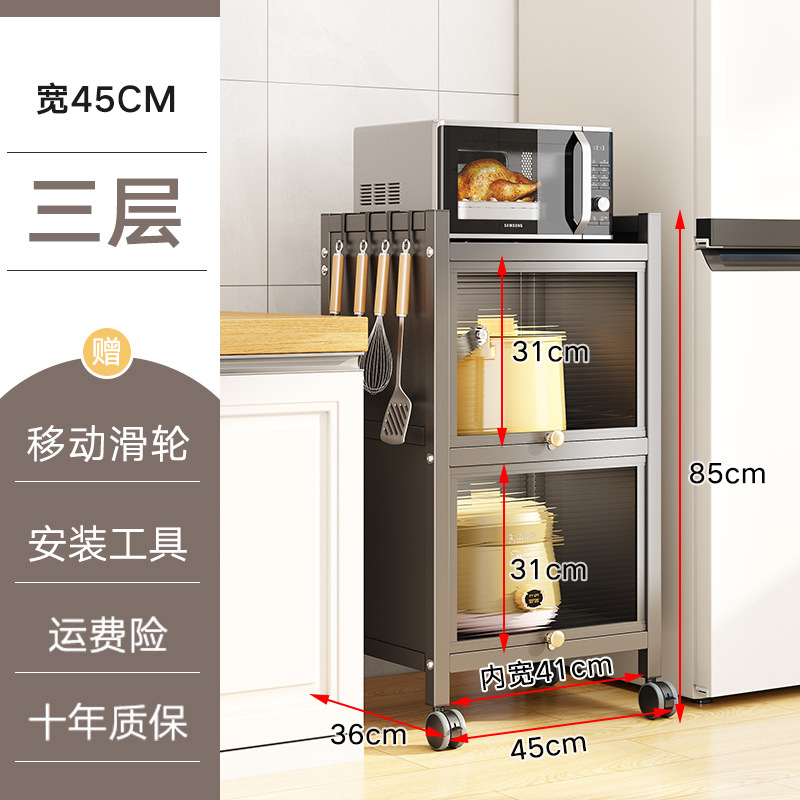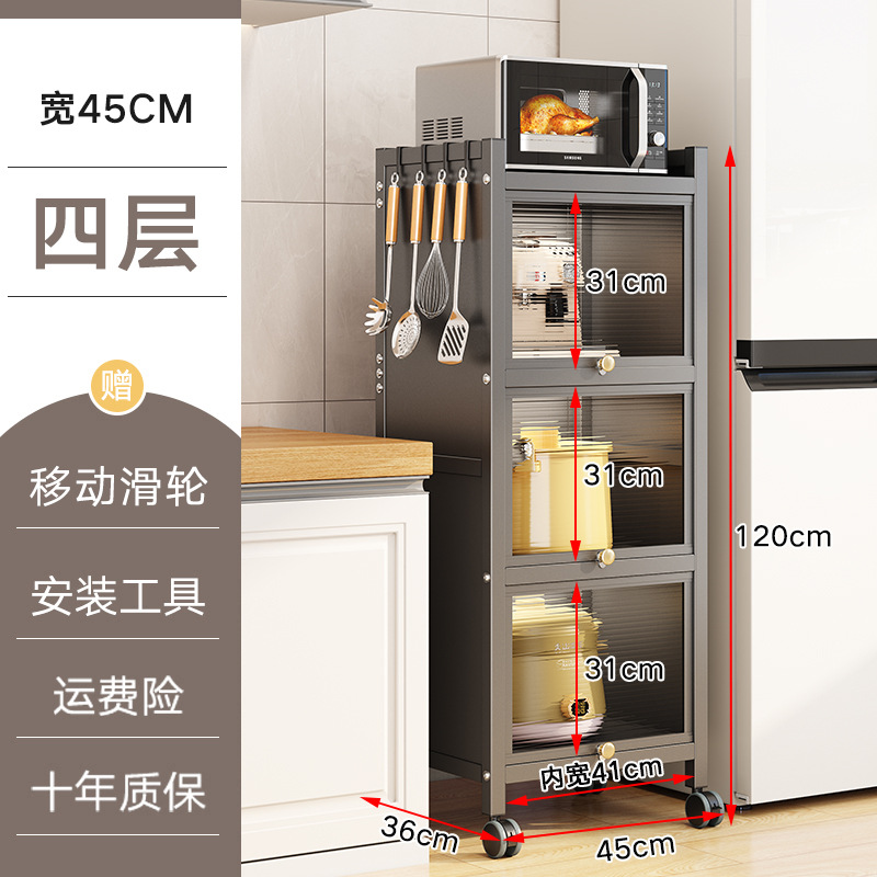 도어 스토리지 랙이있는 주방 스토리지 랙 스토리지 캐비닛 스토리지 랙 바닥에 서있는 전자 레인지 오븐 냄비 랙 캐비닛