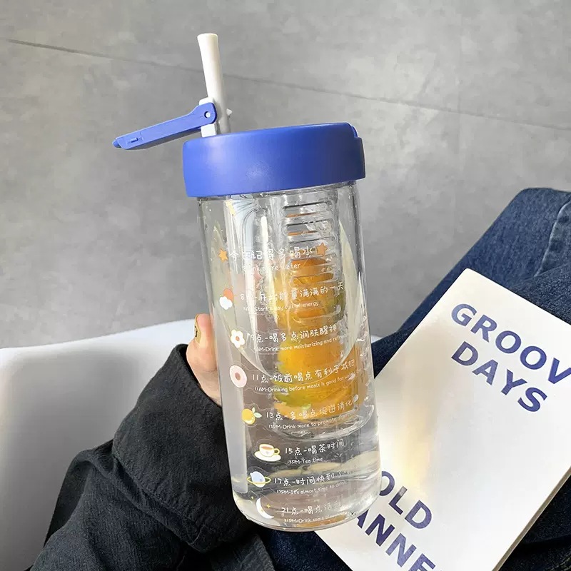 여자를 위한 인터넷 연예인 고붕규산 유리 물컵, 고급스러운 여름 꽃차 밀짚컵, 고온 방지 차 물 분리 컵스토어 가기