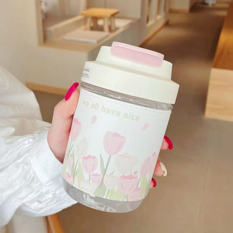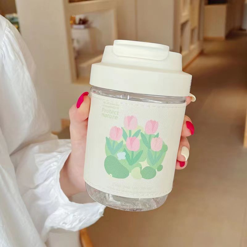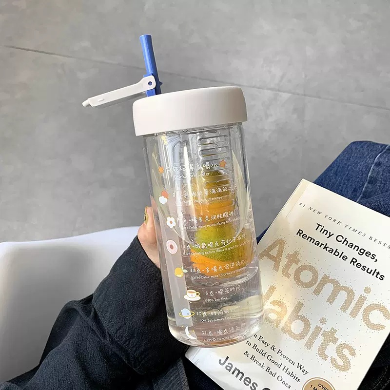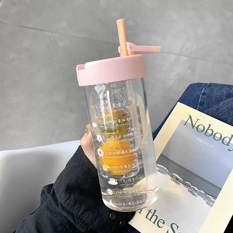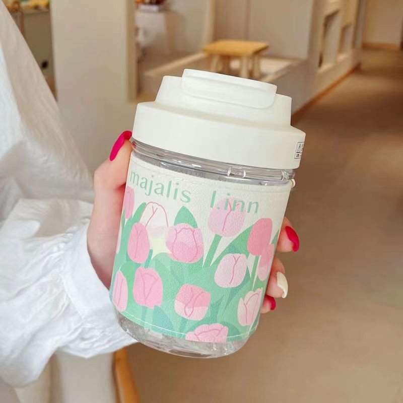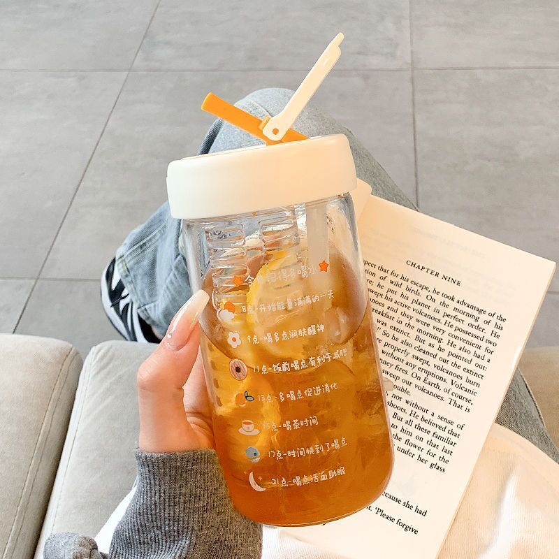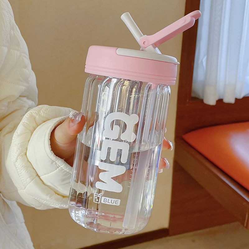 여자를 위한 인터넷 연예인 고붕규산 유리 물컵, 고급스러운 여름 꽃차 밀짚컵, 고온 방지 차 물 분리 컵