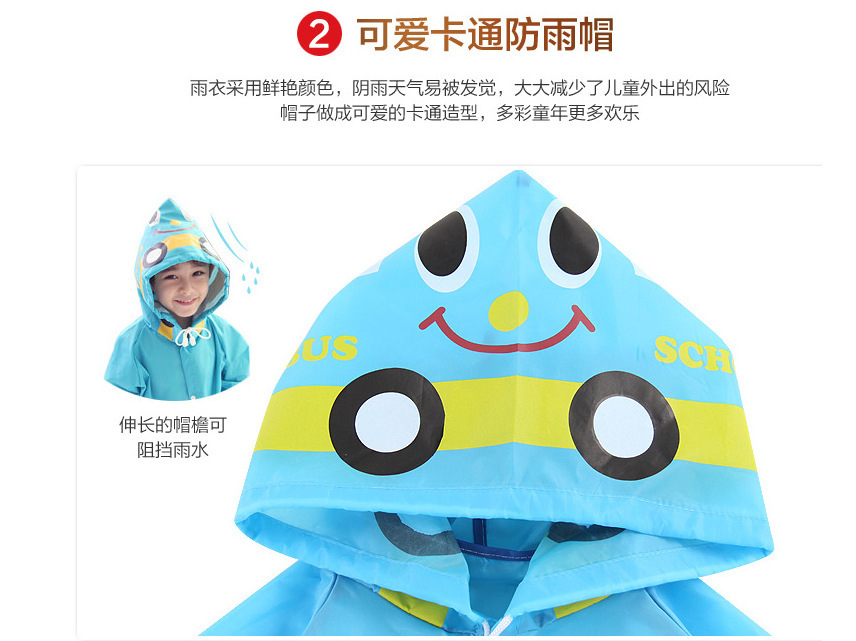 小雪又来 妈妈们给宝宝选一件色彩鲜艳卡通可爱 环保无毒无味的雨衣吧非雨季平时好都可以当防水衣穿呢特别说明:因为广大客户要求这款雨衣是比原来的薄款加厚些!!!不要以为有大人的那种厚雨衣那么厚,而且大雨就是大人的雨衣也会湿衣服的,这款只合适小雨,大雨从颈部也会滑水进去的!不要以此做为退换的理由,介意的客户请慎拍,