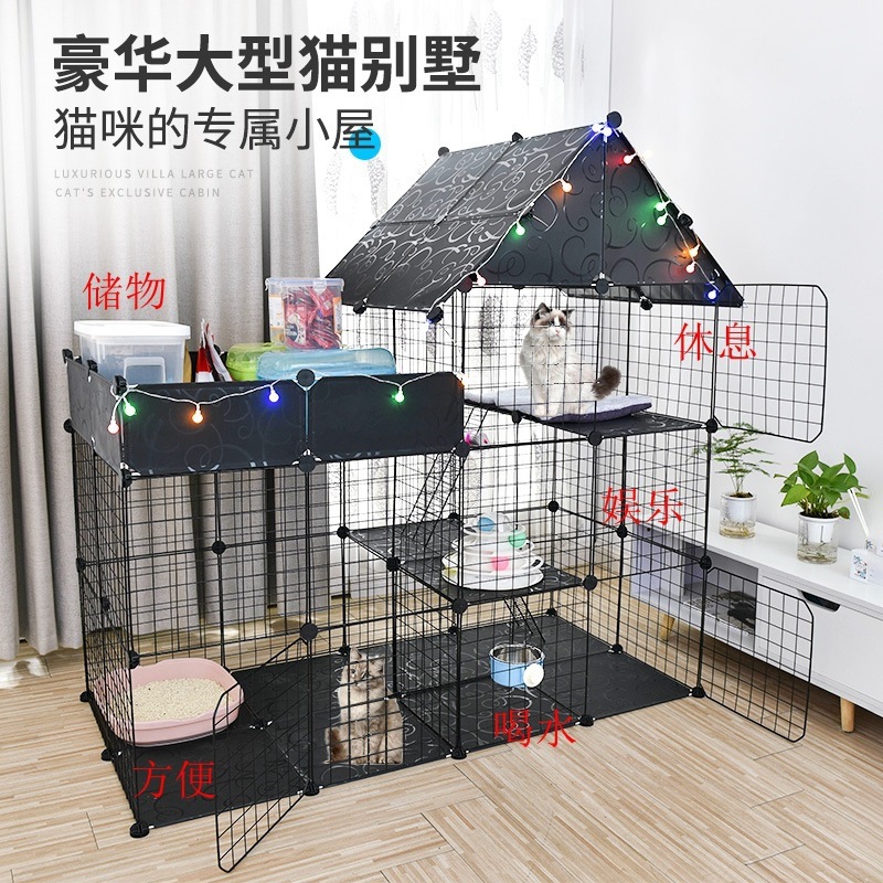 • 猫笼子家用猫别墅大型猫舍双层猫窝猫栅栏防跳猫围栏室内宠物围栏14折扣价:14