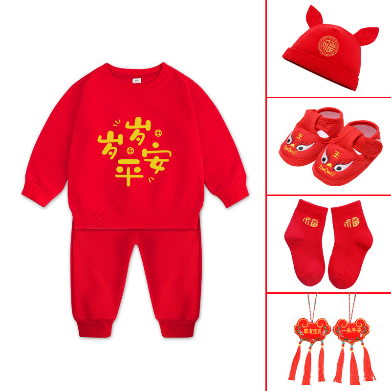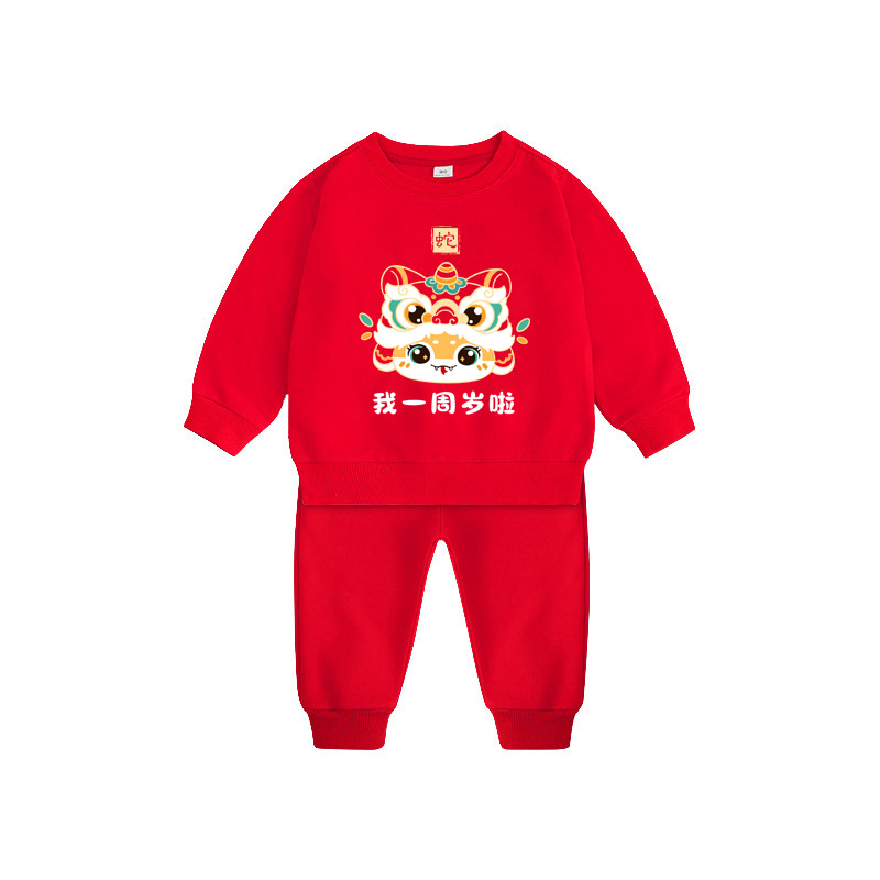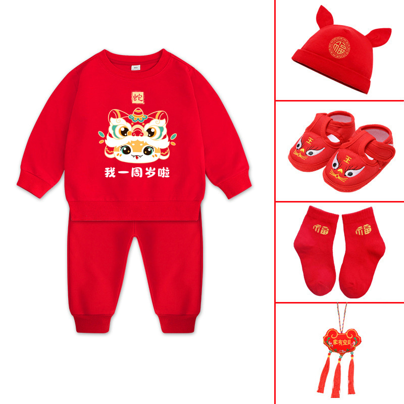 • 춘추 - 뱀띠 아기옷 세트 + 4종 세트 -- 레드 + 레드