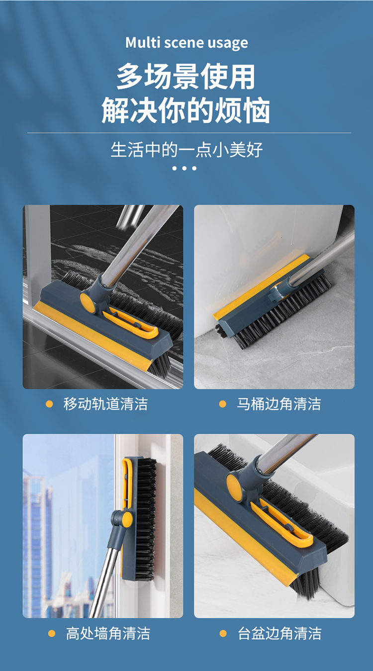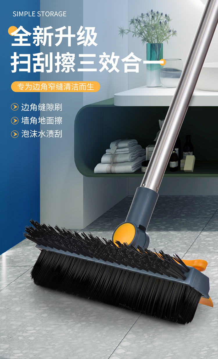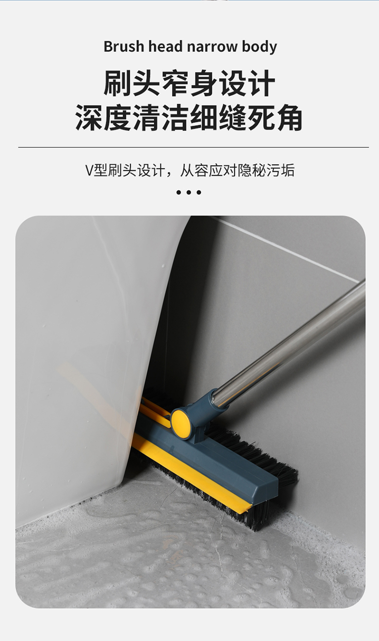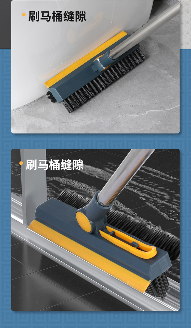 3-in-1 긴 손잡이 바닥 브러시, 욕실 바닥 청소 브러시, 타일 물기 제거 브러시, 화장실 틈새 청소 도구