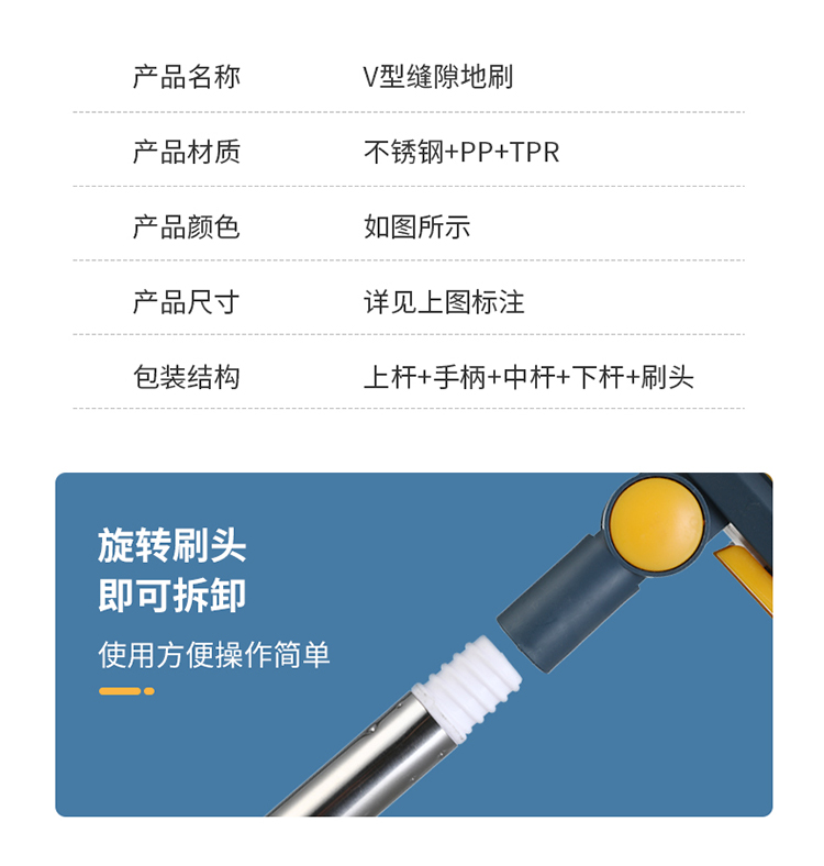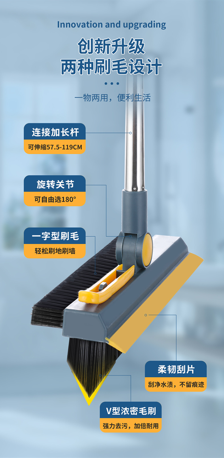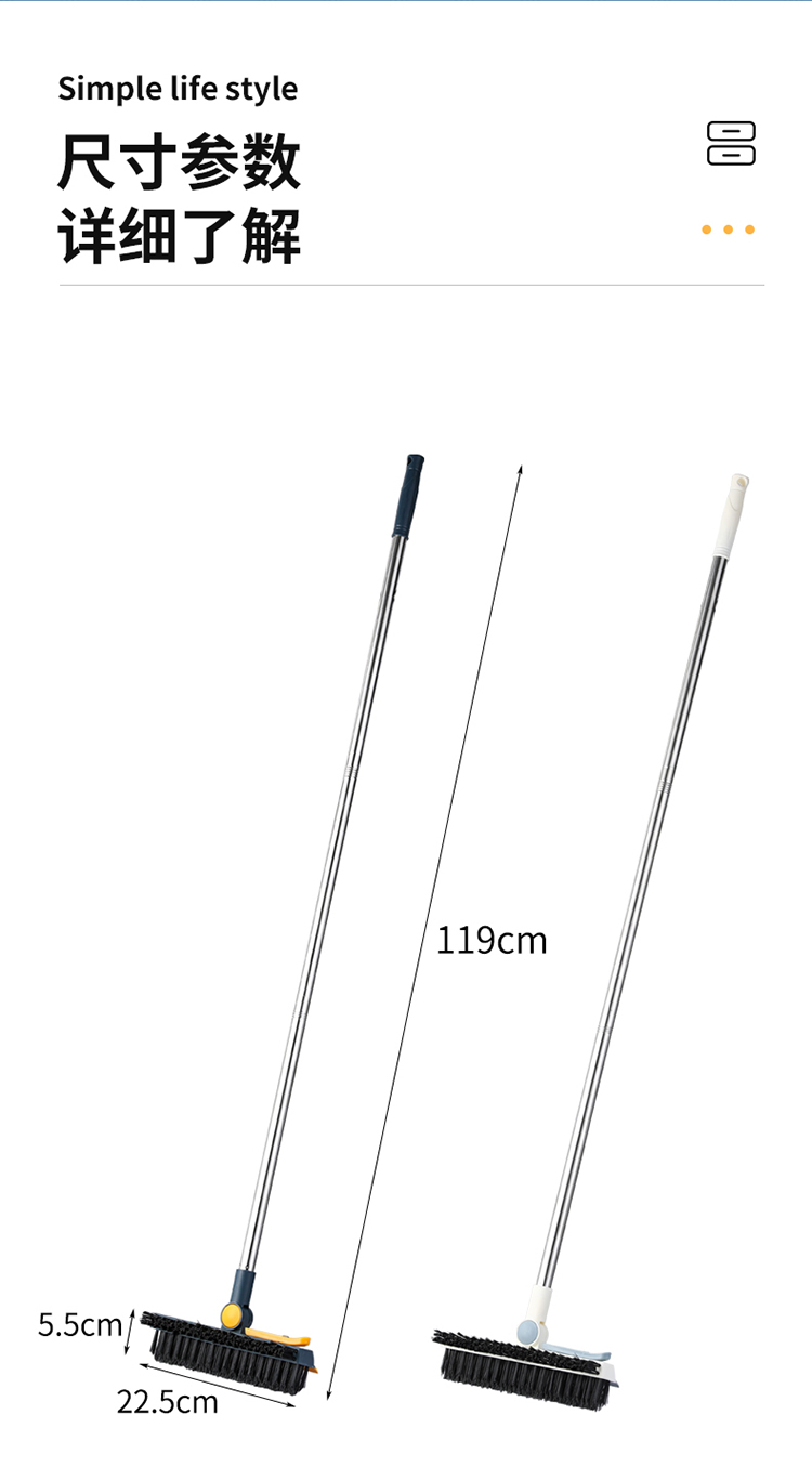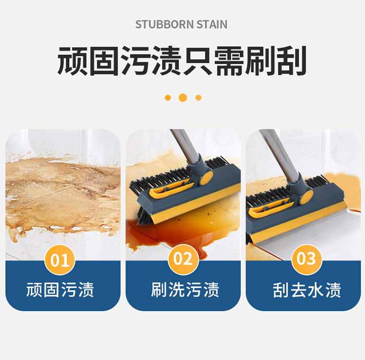 3-in-1 긴 손잡이 바닥 브러시, 욕실 바닥 청소 브러시, 타일 물기 제거 브러시, 화장실 틈새 청소 도구