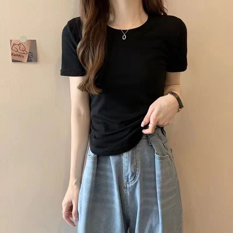 순면 불규칙 반팔 티셔츠 여성용 여름 2026 신상 슬림핏 귀엽고 달콤한 숏탑 인스타 트렌드