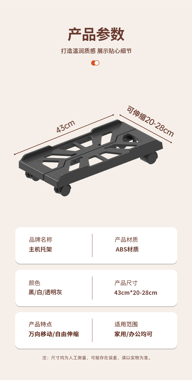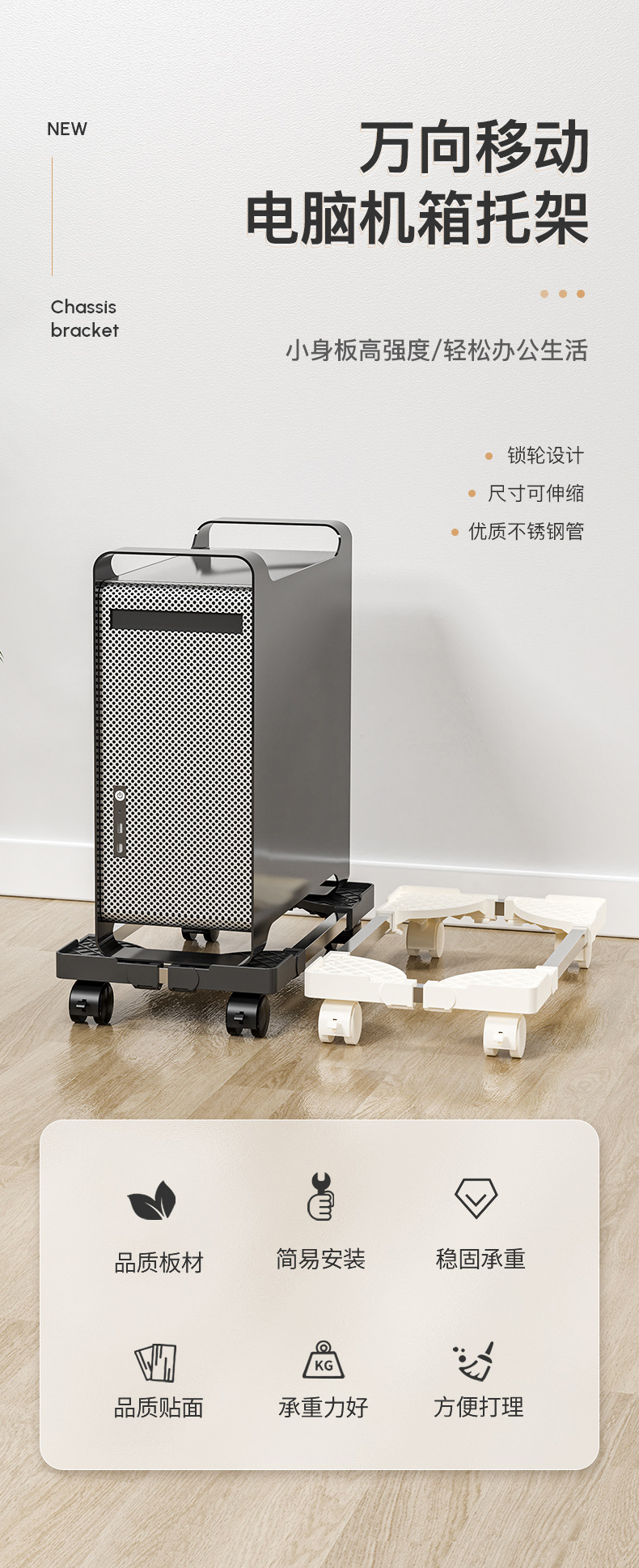 컴퓨터 본체 거치대 가정용 사무실용 이동식 바퀴 달린 케이스 보관대 확장형 스탠드 심플한 수납 선반