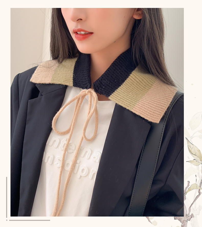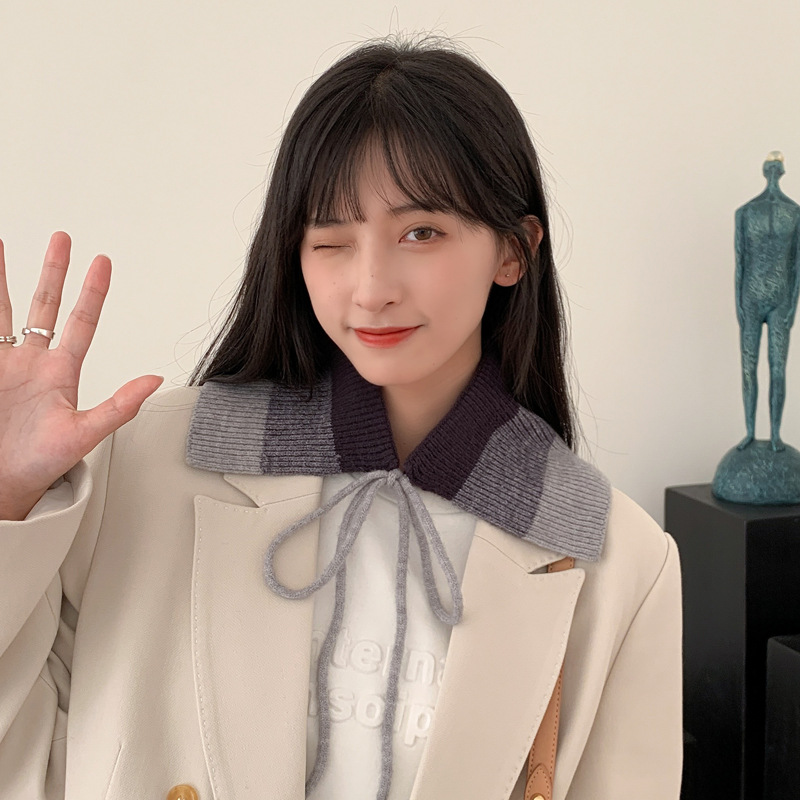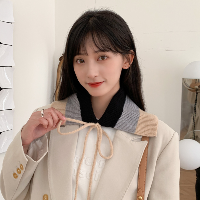 니트 울 숄 여성 가을과 겨울 새로운 스타일 우아한 모든 매치 단색 스카프 학생 레이스 업 장식 가짜 칼라 스카프