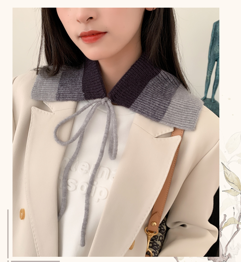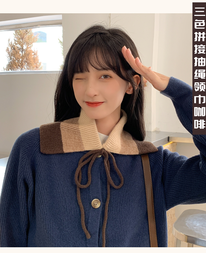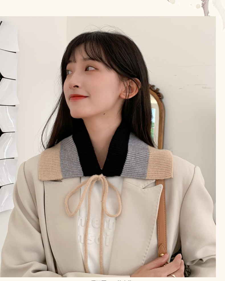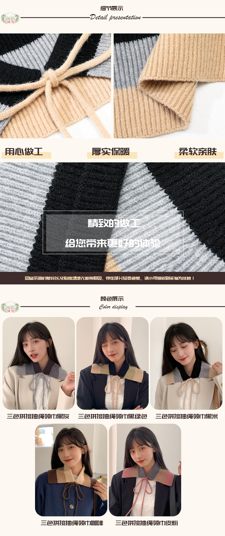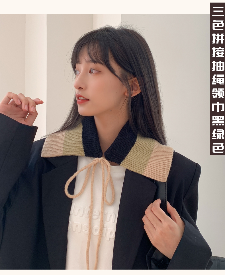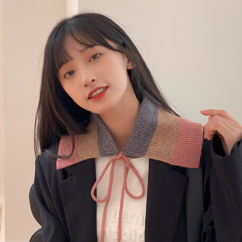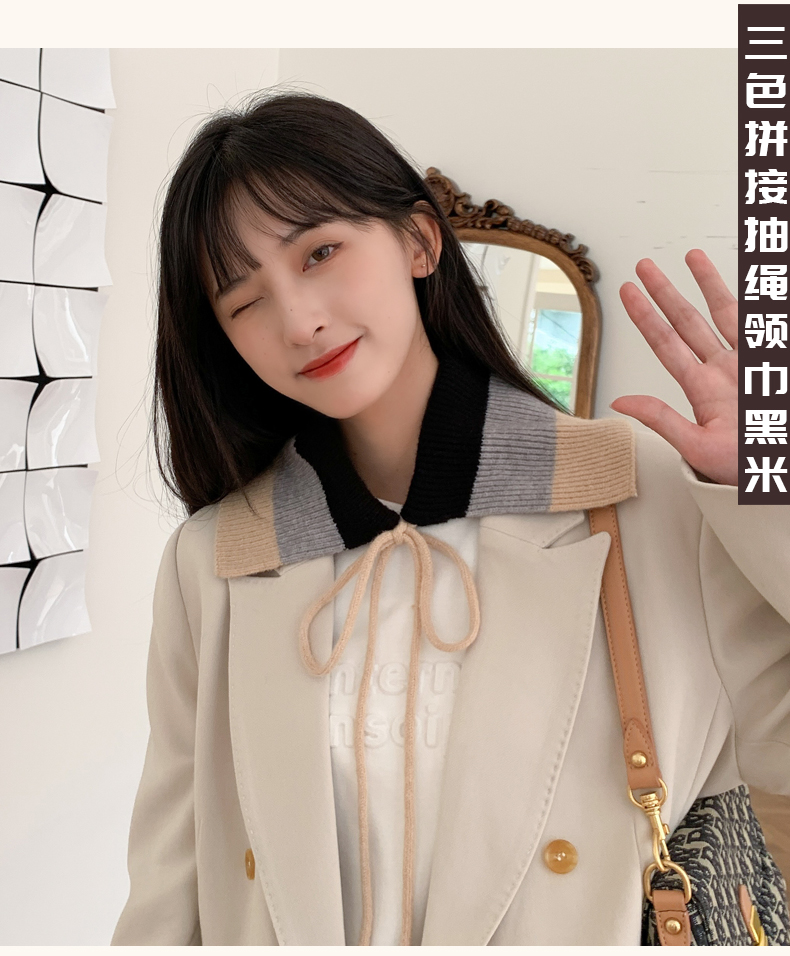 니트 울 숄 여성 가을과 겨울 새로운 스타일 우아한 모든 매치 단색 스카프 학생 레이스 업 장식 가짜 칼라 스카프스토어 가기