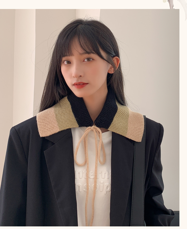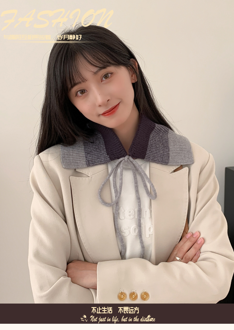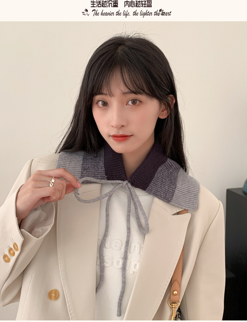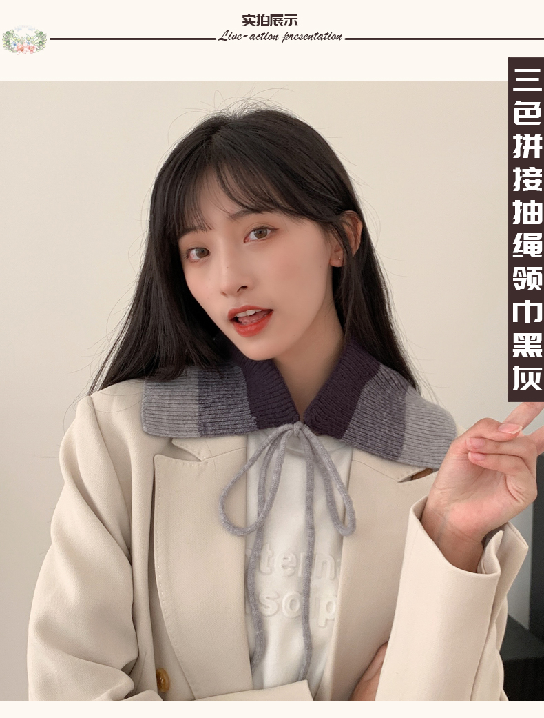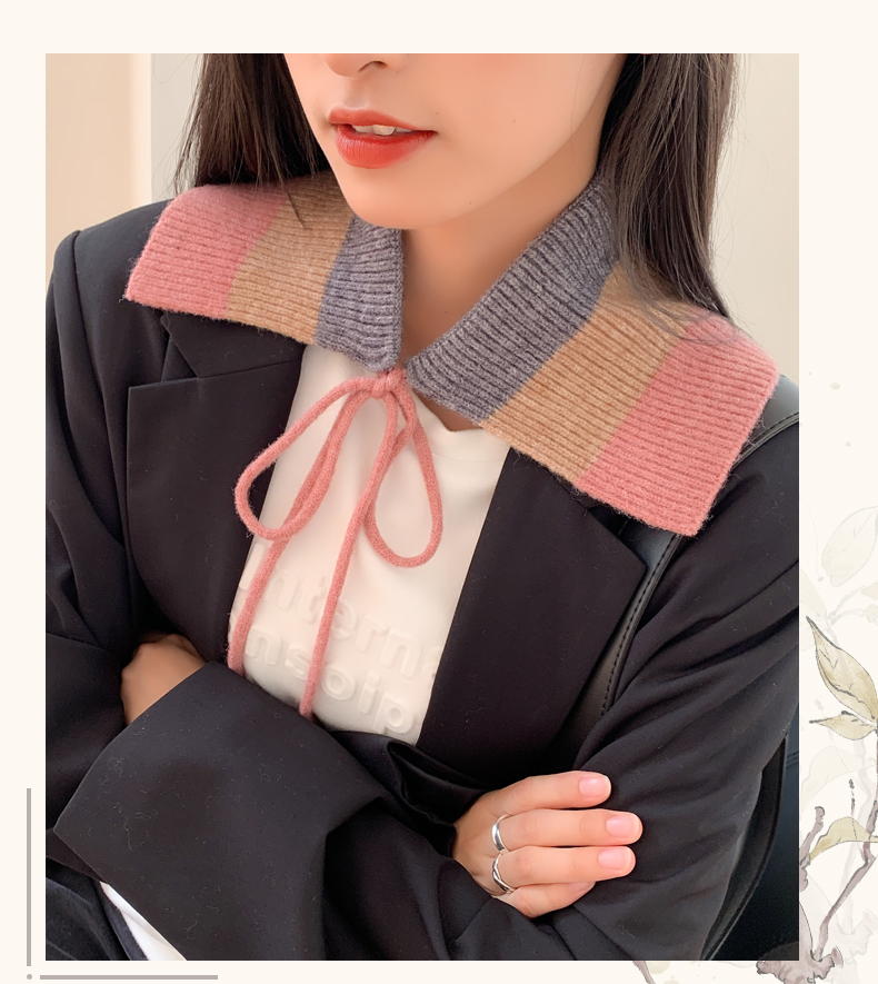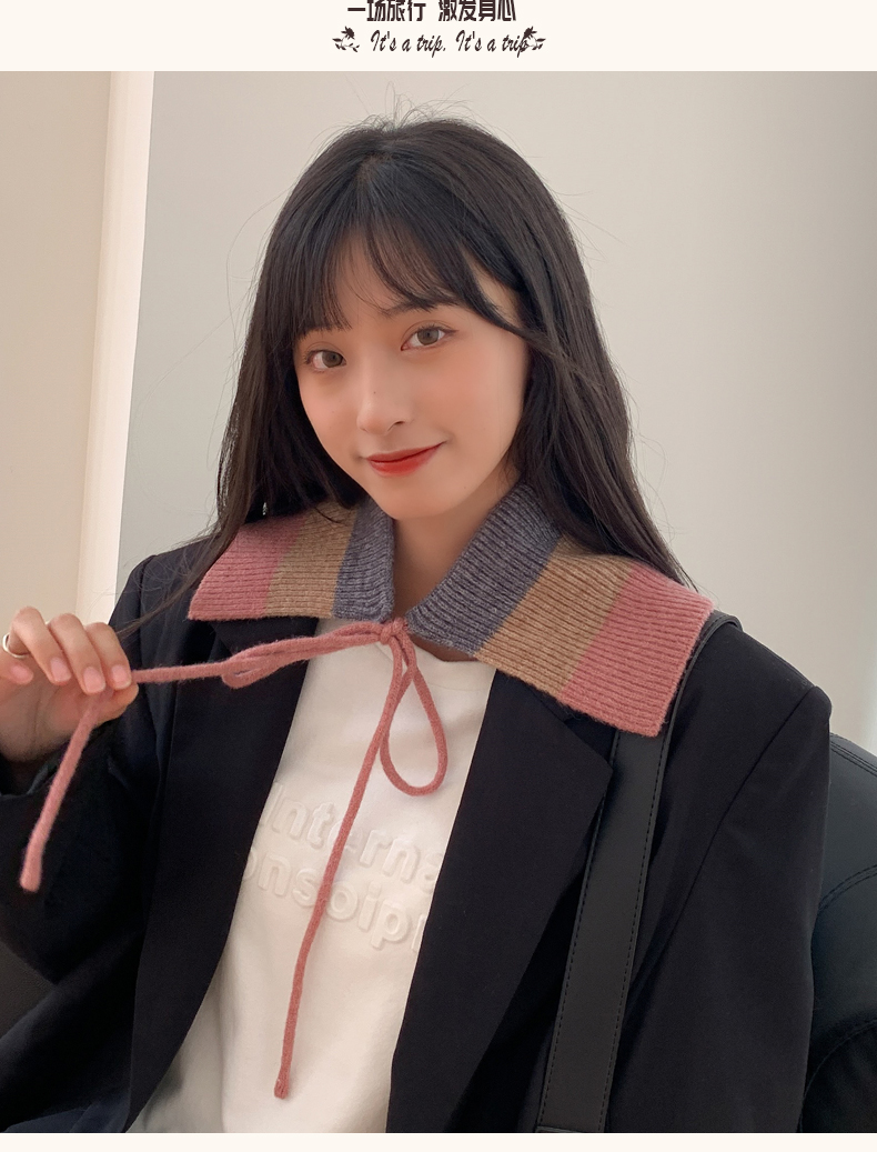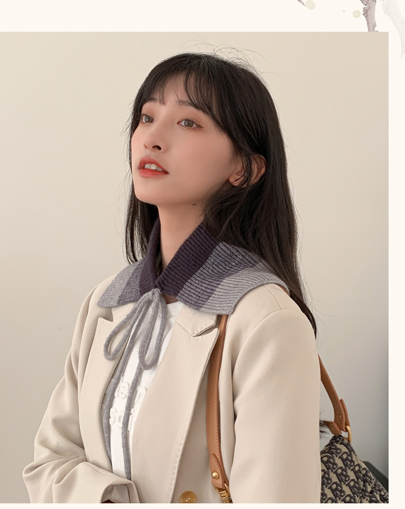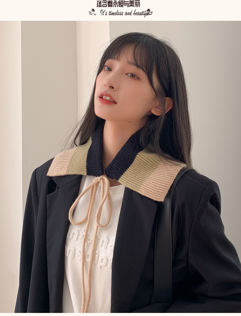 니트 울 숄 여성 가을과 겨울 새로운 스타일 우아한 모든 매치 단색 스카프 학생 레이스 업 장식 가짜 칼라 스카프스토어 가기