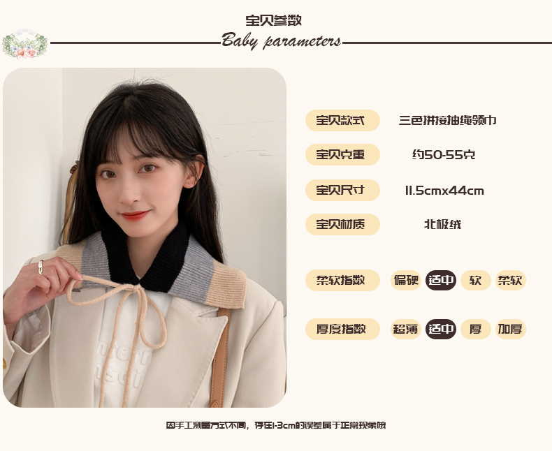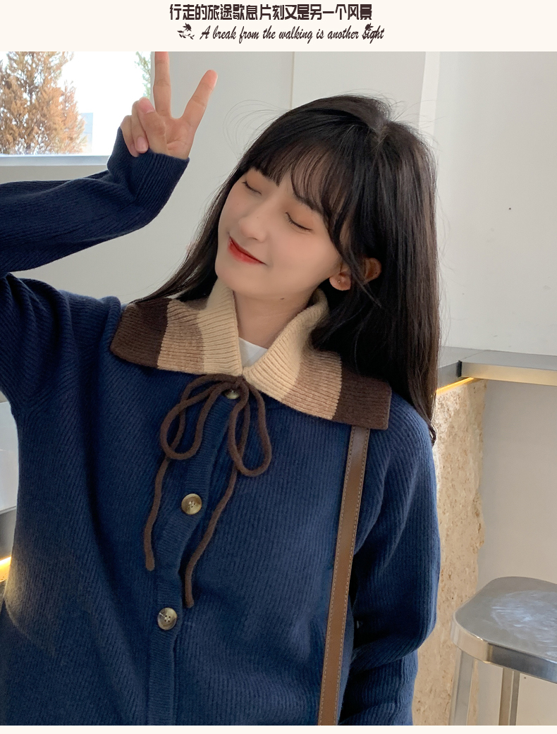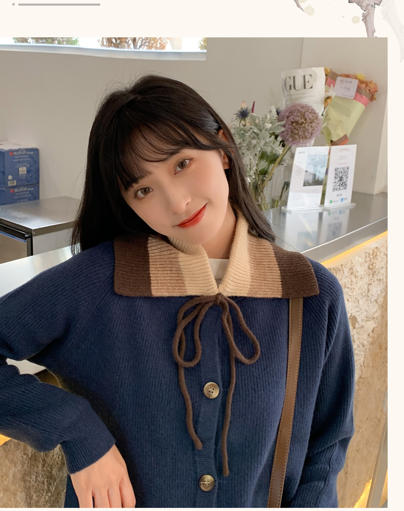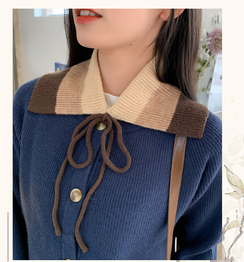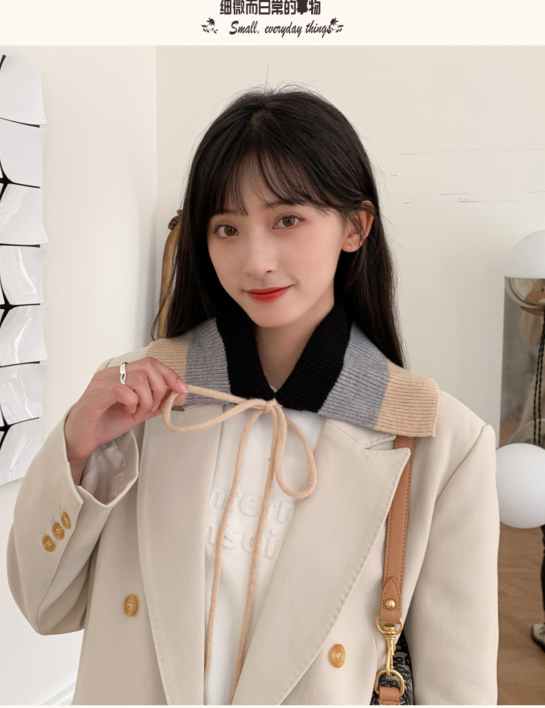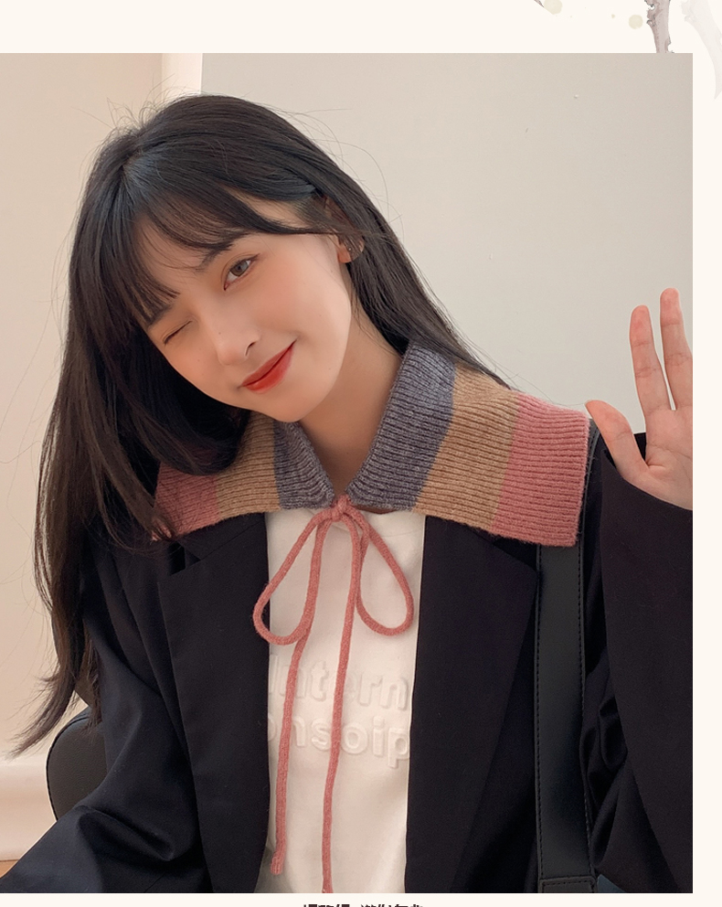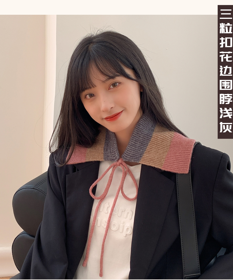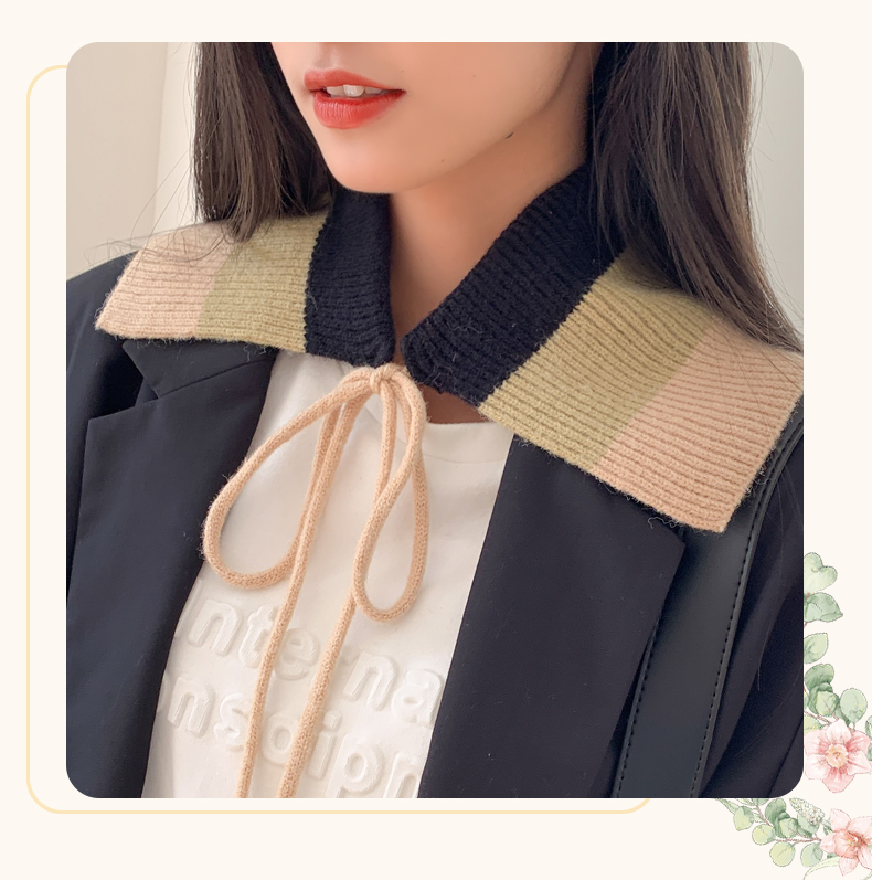 니트 울 숄 여성 가을과 겨울 새로운 스타일 우아한 모든 매치 단색 스카프 학생 레이스 업 장식 가짜 칼라 스카프스토어 가기