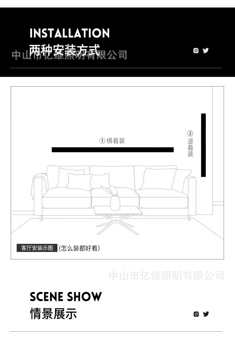 미니멀리스트 긴 벽 램프 거실 침실 측면 발광 LED 스트립 조명 선형 선 얇은 벽 램프