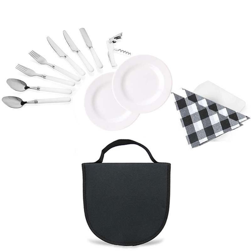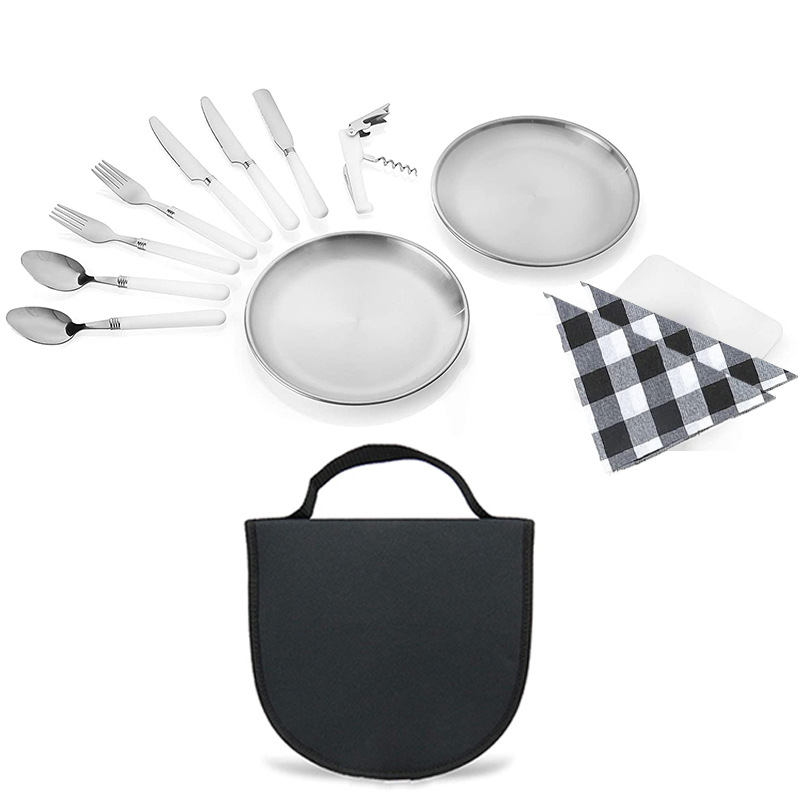 야외 스테인리스 캠핑 식기 가방 등산 여행 캠핑 피크닉 가방 핸드백 야외 2 인용 조리기구 세트