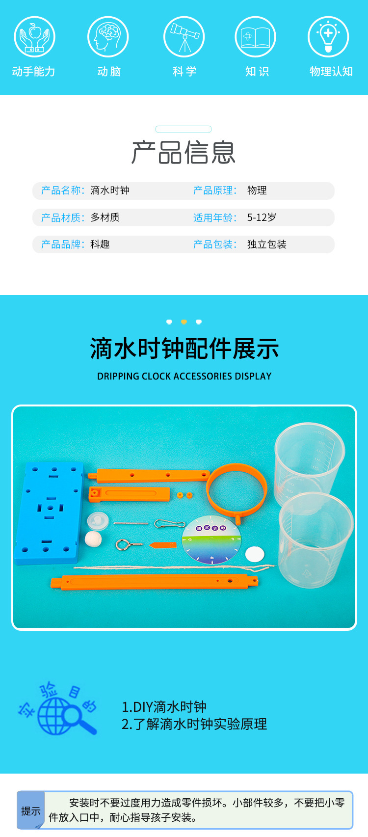 과학기술 소량 제작 DIY 물방울 시계 손수 만들기 재료 어린이 과학 실험 초등학생 재미있는 과학 교육 기기