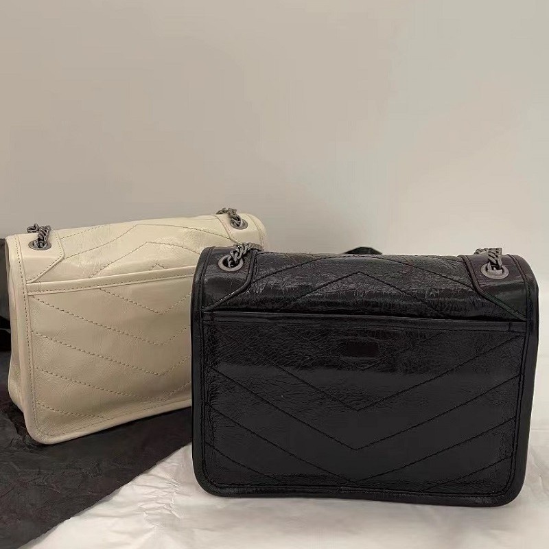 오일 왁스 소 가죽 체인 방황 가방 어깨 메신저 가방 여성 스몰 사이즈 주름 가죽 메신저 가방 복고풍 하이 센스 가방스토어 가기