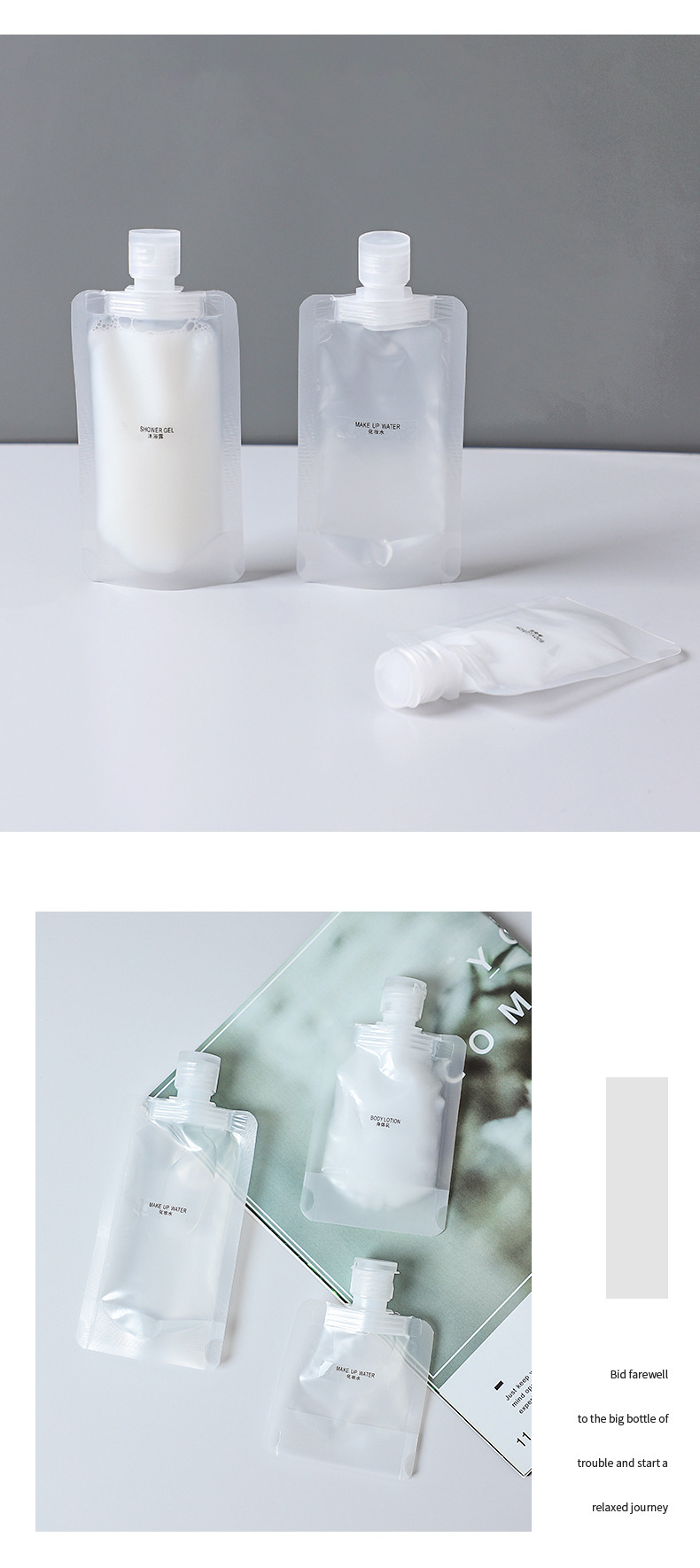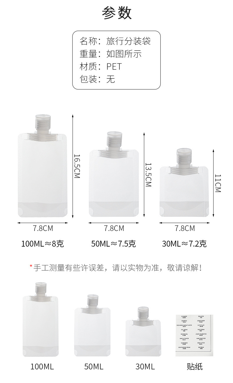 여행 포장 가방 도매 투명 나사 뚜껑 PE 두꺼운 샤워 젤 샴푸 휴대용 로션 화장품 보관 가방스토어 가기