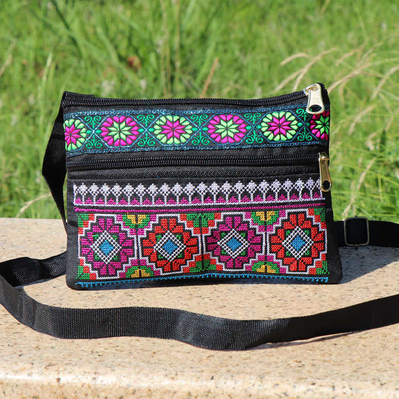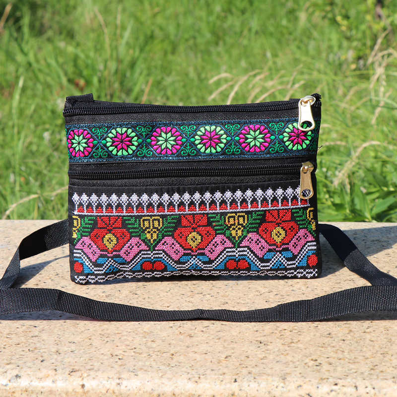 윈난 에스닉 스타일 크로스 스티치 숄더 메신저 백 더블 지퍼 백 자수 가방 관광 기념품 가방 도매스토어 가기