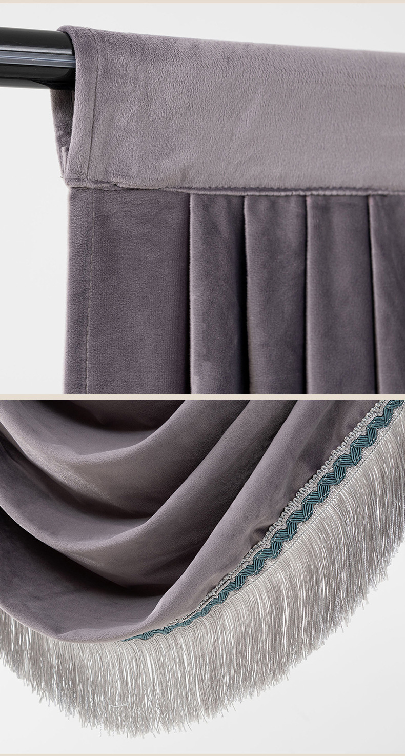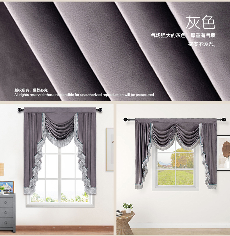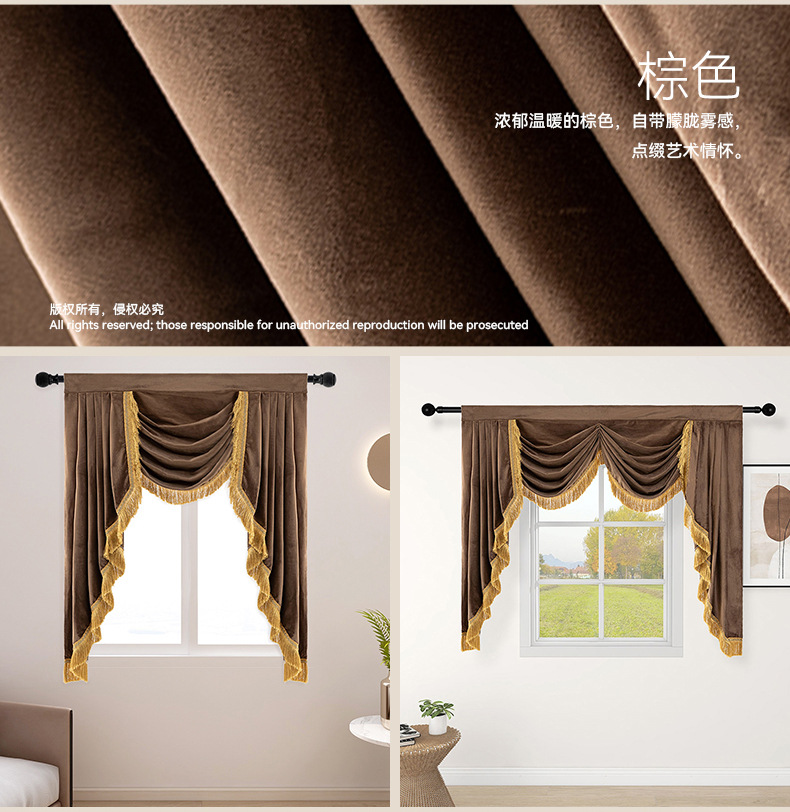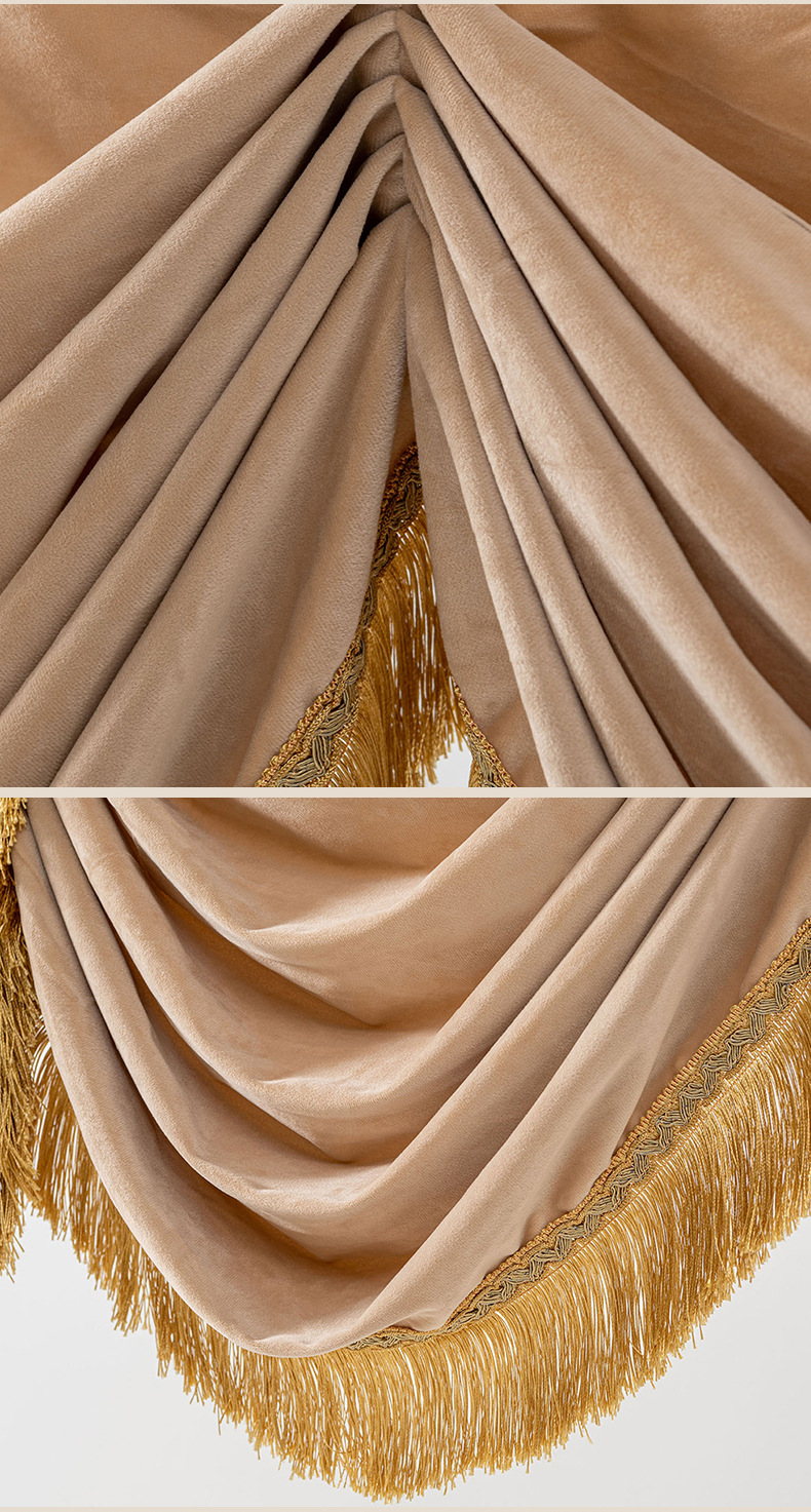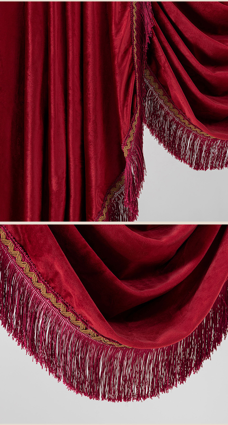 라이트 럭셔리 레트로 벨벳 커튼, 유럽풍 물결무늬 프린지 커튼 헤드, 호텔용 크로스보더 커튼스토어 가기