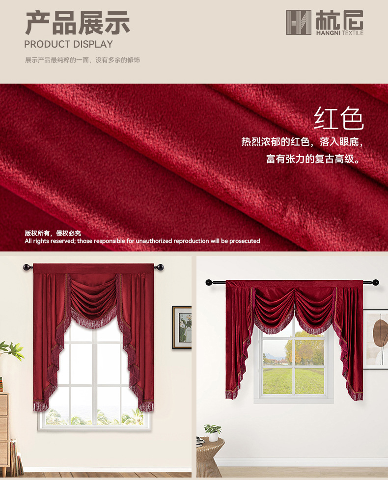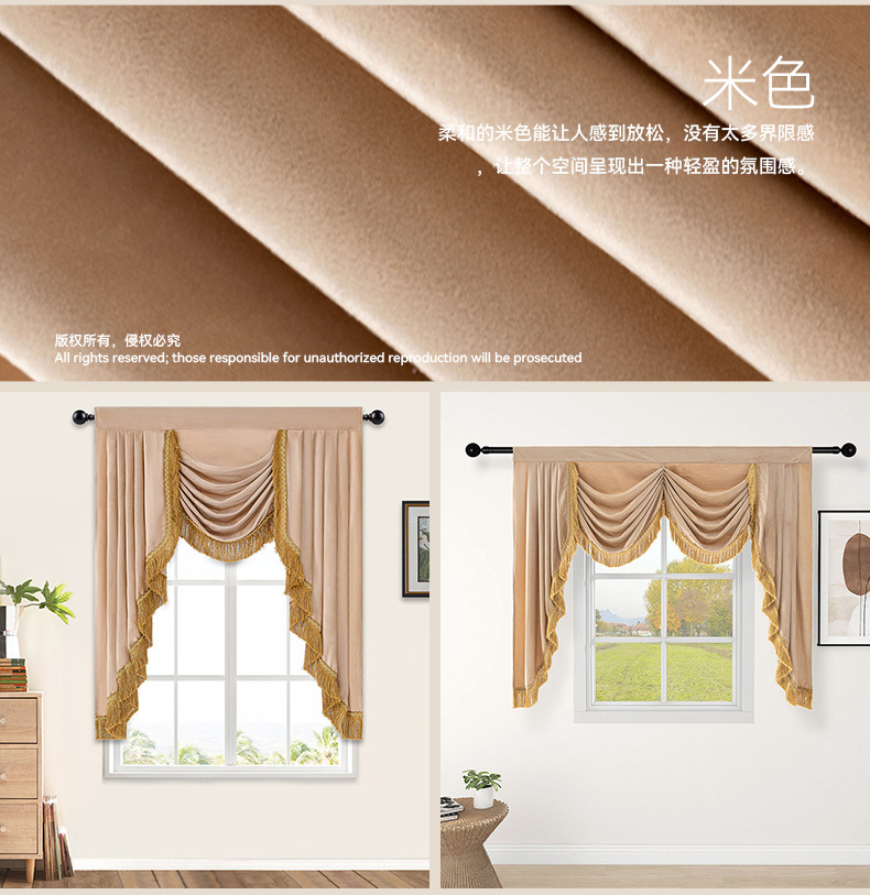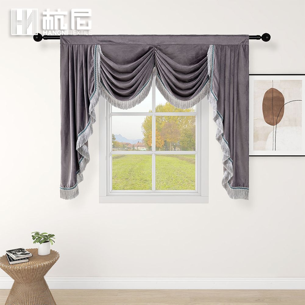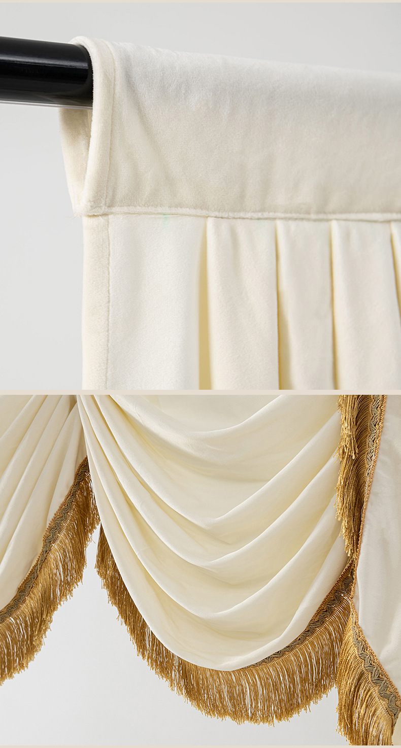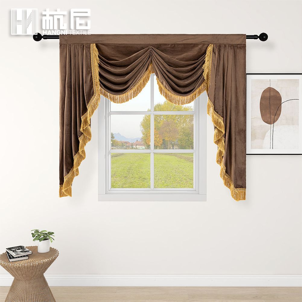 라이트 럭셔리 레트로 벨벳 커튼, 유럽풍 물결무늬 프린지 커튼 헤드, 호텔용 크로스보더 커튼스토어 가기
