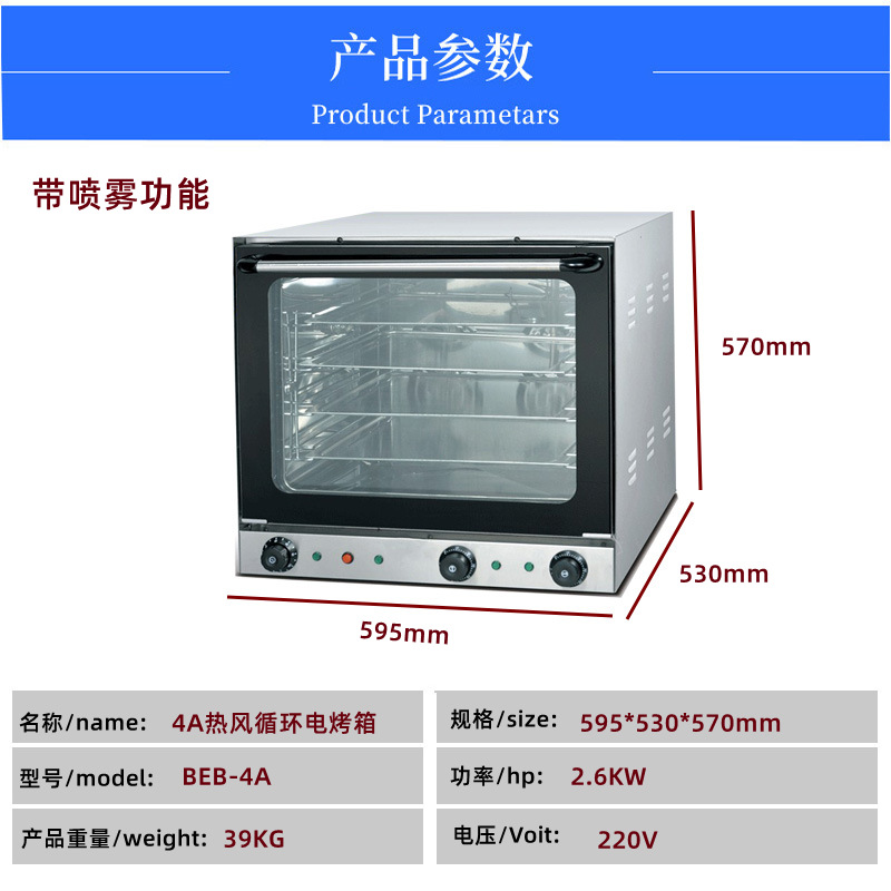 뜨거운 공기 순환 1A 전기 오븐 상업 토스트 디저트 피자 오븐 자동 온도 제어 대용량 전기 오븐