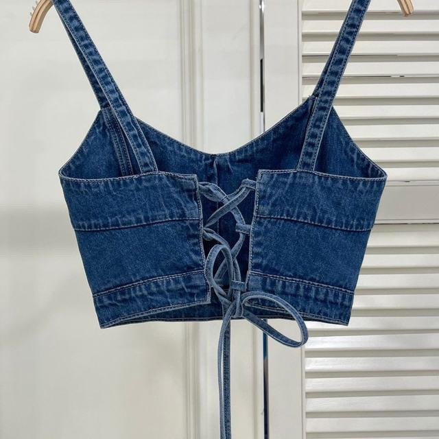 여성을위한 디자인 캐미솔 2024 여름 새로운 데님 새는 배꼽 바깥 착용 슬림 바깥 착용 슬리밍 짧은 조끼 패션스토어 가기
