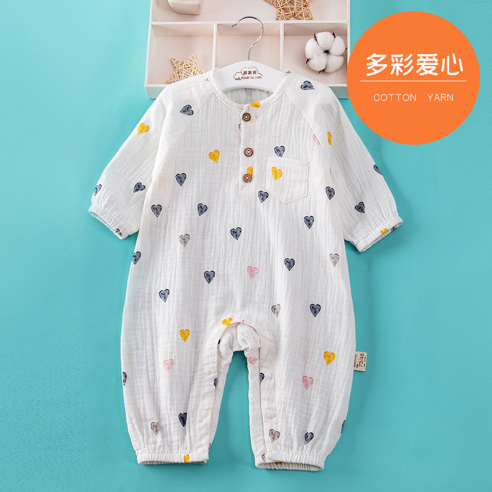 아기 점프 슈트 얇은 순면 거즈 하이 신생아 용 긴팔 등산 의류 봄 가을 에어컨 여름용 가정용 의류