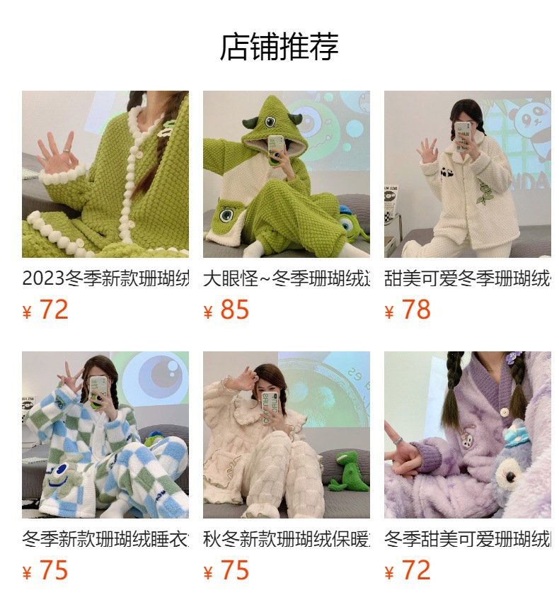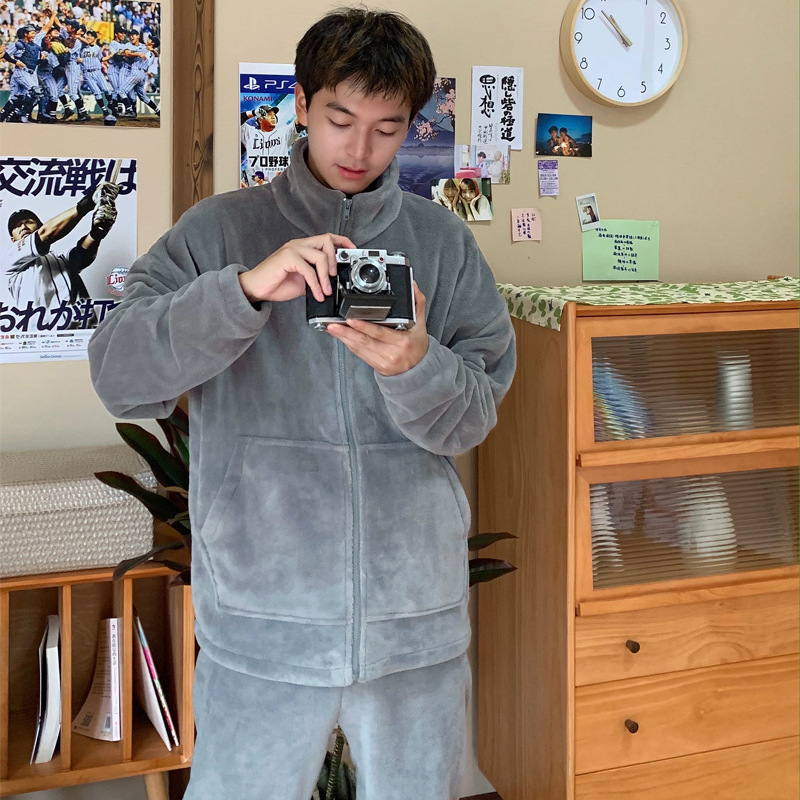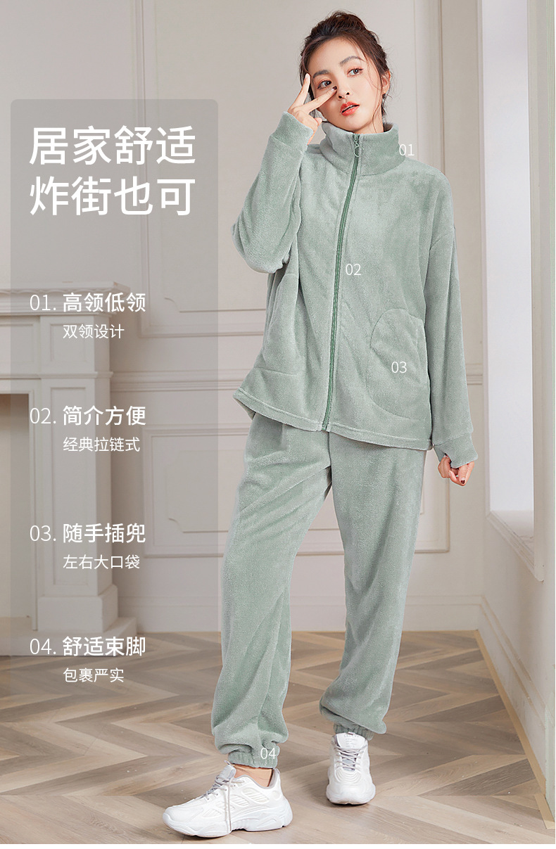 산호 양털 잠옷 여자의 겨울 기모 두꺼운 캐주얼 커플 잠옷 여자의 따뜻한 가정 옷 세트스토어 가기