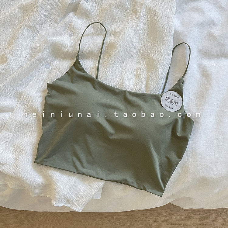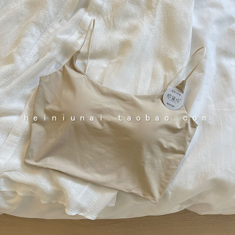 새로운 한국식 솔리드 컬러 쇼트 이너 아이스 실크 여름 캐미솔 여성용 슬림핏 아름다운 백 튜브 탑 아우터 착용 가슴 랩스토어 가기