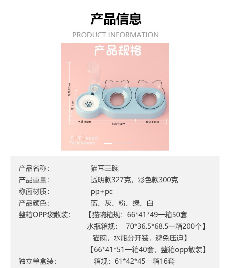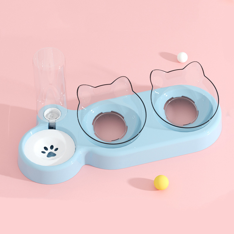 • 고양이 귀 세 그릇-파란색 투명 그릇