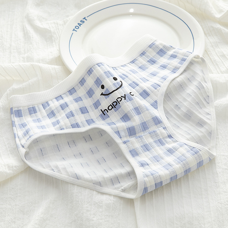 일본 격자 무늬 팬티 여성용 면 가랑이 통기성 여아 바지 미드 웨이스트 여아 학생 여성 팬티 도매스토어 가기