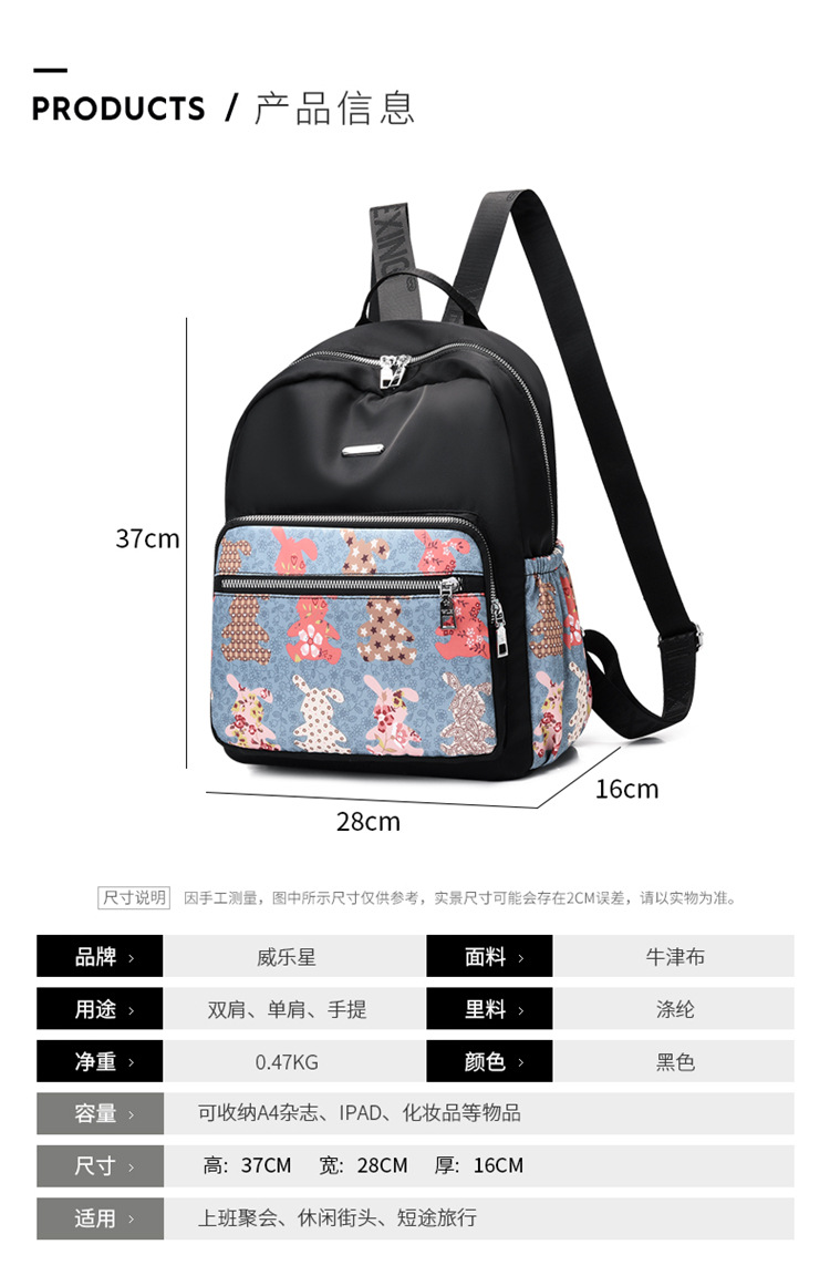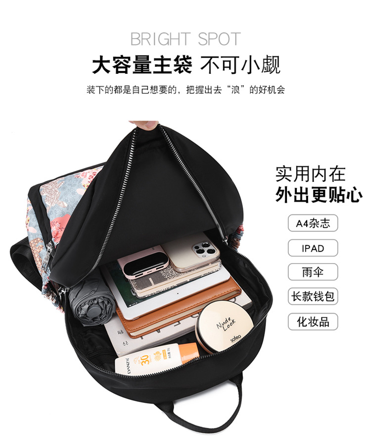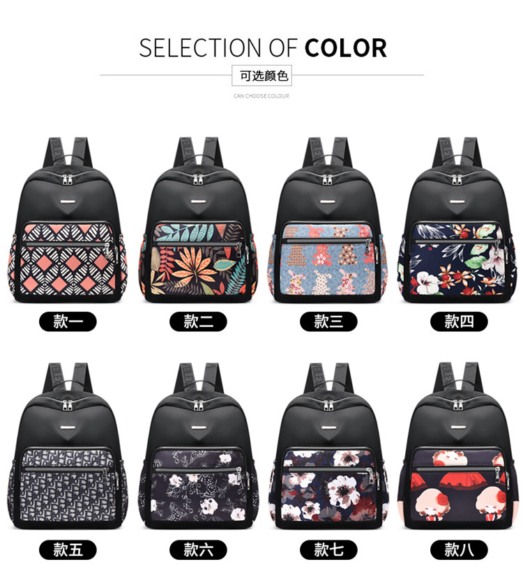 배낭 여성용 새로운 대용량 옥스포드 천 인쇄 어머니 가방 중년 및 노인 여행 배낭 캔버스 학생 책가방