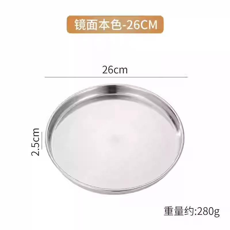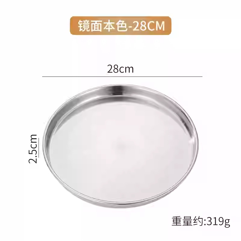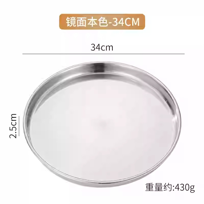 한국식 스테인레스 디스크 대형 트레이 플랫 바닥 얕은 접시 깊은 접시 베이킹 접시 냄비 접시 케이크 접시 카페 과일 접시