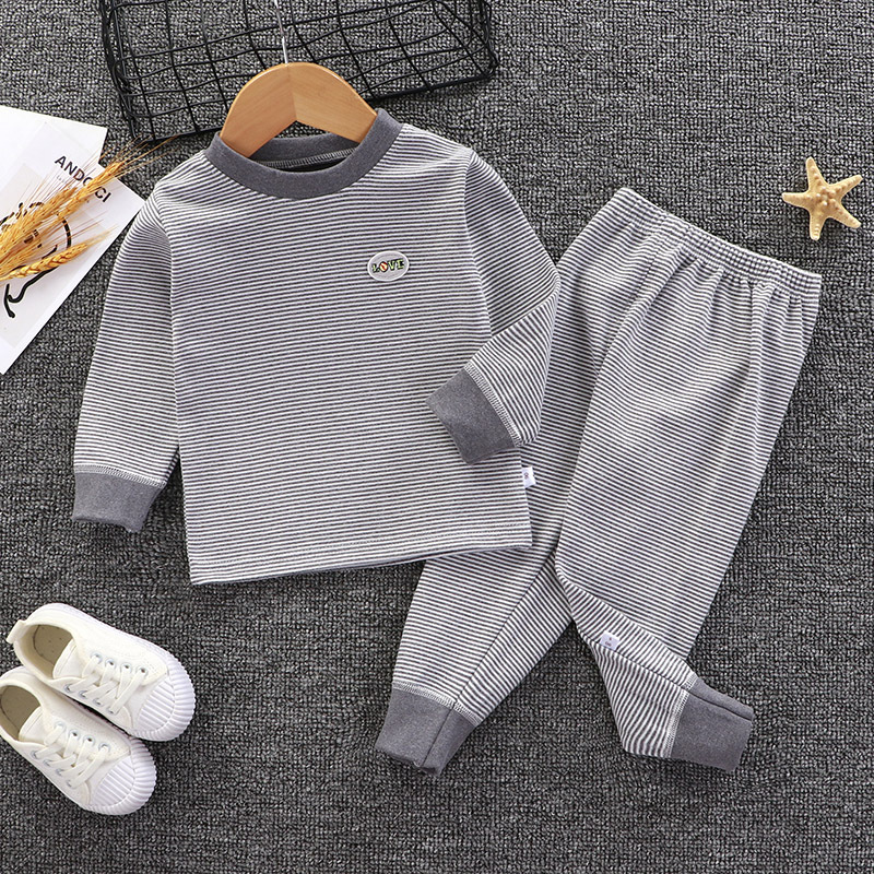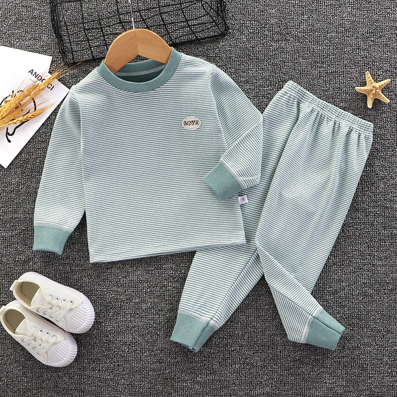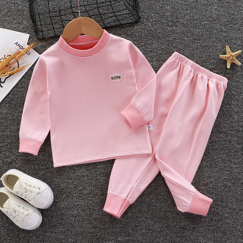 어린이 벨벳 열 속옷 세트 AB 양면 샌딩 패딩 가을 옷 가을 바지 가을과 겨울 어린이 줄무늬 잠옷