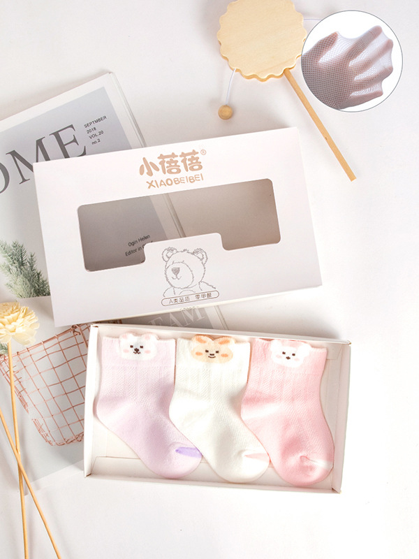 3 쌍의 봄과 여름 메쉬 어린이 양말 만화 아기 양말 귀여운 아기 중간 튜브 신생아 뼈없는 면 양말 선물