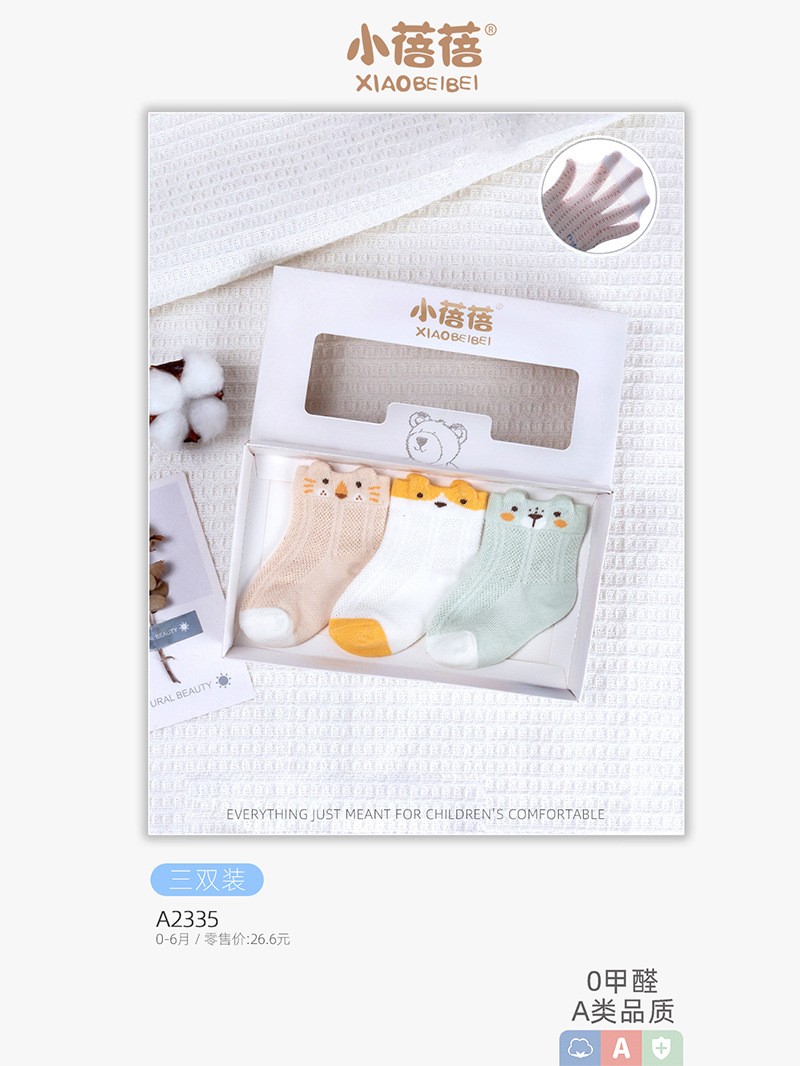 3 쌍의 봄과 여름 메쉬 어린이 양말 만화 아기 양말 귀여운 아기 중간 튜브 신생아 뼈없는 면 양말 선물스토어 가기